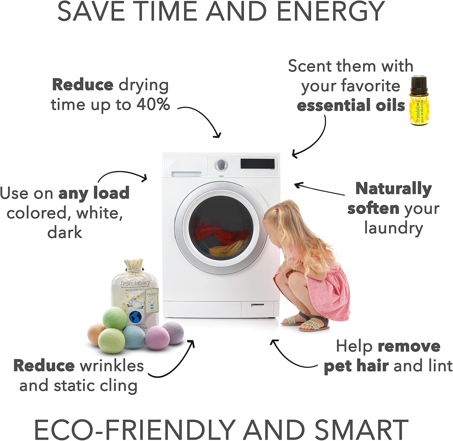 - Reduces Static and Pet Hair: Helps control static cling and naturally attracts pet hair and lint from clothing.