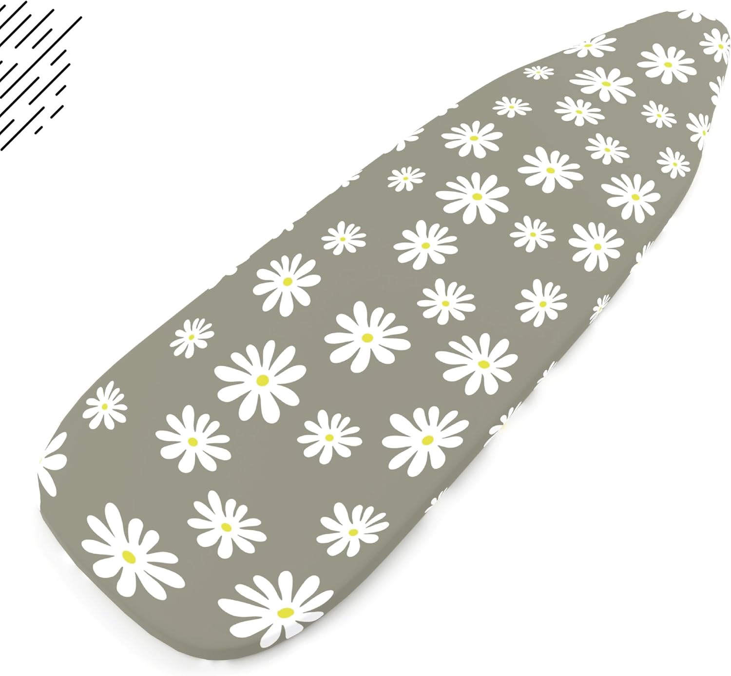 Encasa XO Ironing Board Cover and Pad 28"x12" - Thick 3mm Felt Padding, Drawstring Tightening & Lock, Easy Fit, Scorch & Stain Resistant, Fits Mini Ironing Board - Daisy Grey