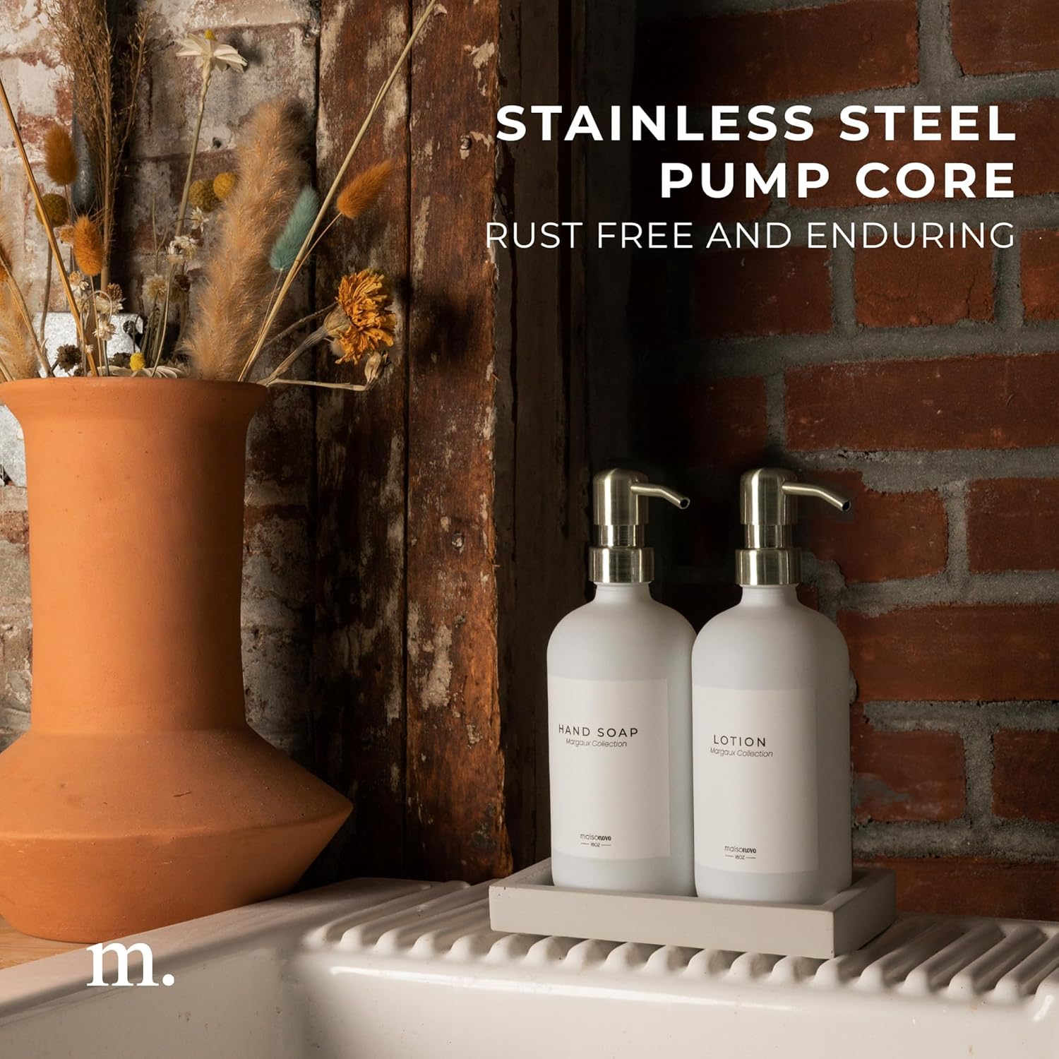 - Gentle on the Planet: Minimize waste with our sink soap dispenser pump. This sleek refillable soap dispenser set reduces environmental impact while adding natural elegance to your space. Opt for better living without compromising style with this hand soap and dish soap dispenser set.