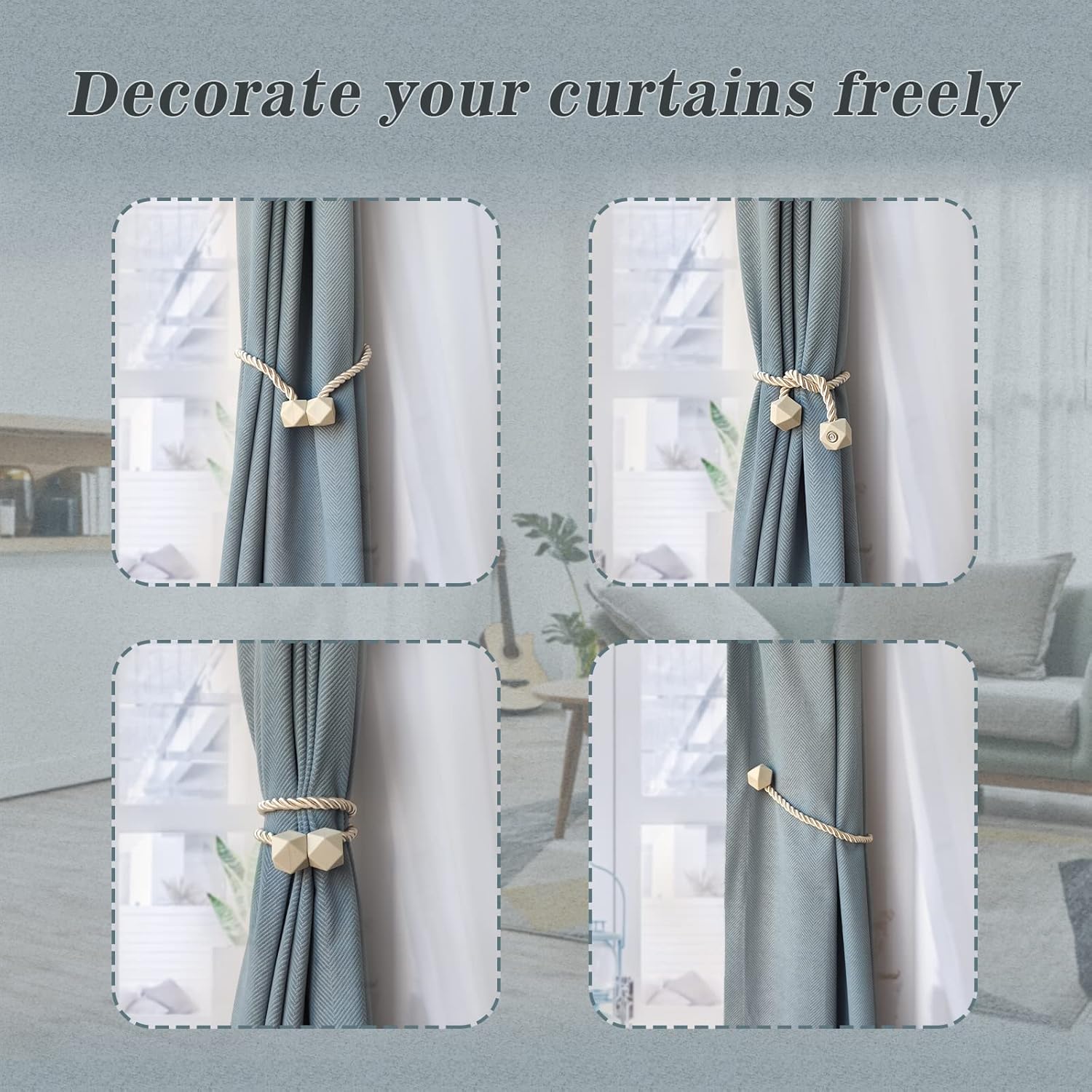 - 🌛[Upgrade Powerful Magnetic] Our magnetic curtain tiebacks magnets use high-end new imported nickel-plated magnets, with strong corrosion resistance and durability, more magnetic than ordinary magnetic curtain tiebacks, and do not rust and not lose color. The rope of curtain tie adopts upgrade thickened solid polyester yarn, which is not only durable, but also not easy to wear or pilling.