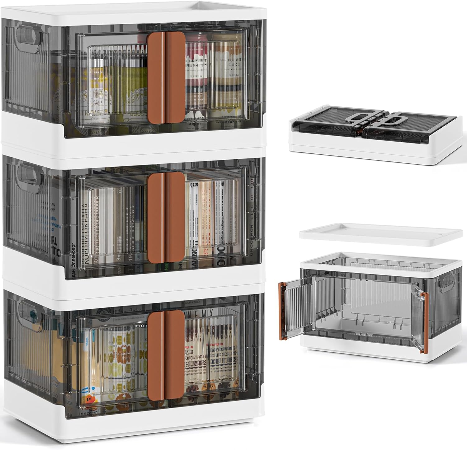 HAIXIN Closet Organizers and Storage - Trunk Car Organizer with Lids and Doors, Dorm Room Essentials, 8.4 Gal Collapsible Stackable Storage Bins, Plastic, 3 Pack