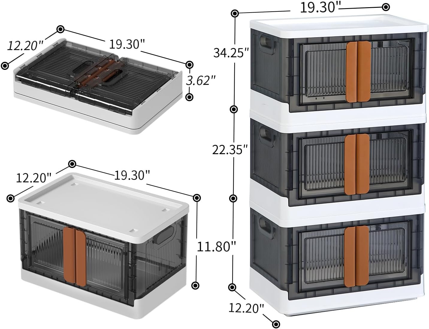 - 【Large Storage Capacity】19.3" L*12.2" W, 11.8"H (3.62" Folded) with 8.4 Gal max load capacity. Sturdy enough to bear weight up to 110 lbs. Handle design on both sides, helps to lift the bins up easily.