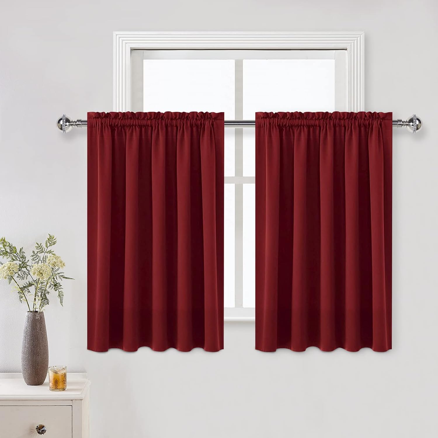 DWCN Burgund Short Blackout Curtains for Bedroom/Kitchen, Thermal Insulated Energy Saving Room Darkening Curtains for Living Room (W60 x L36 inch, Set of 2 Panels, Top of Rod Pocket)