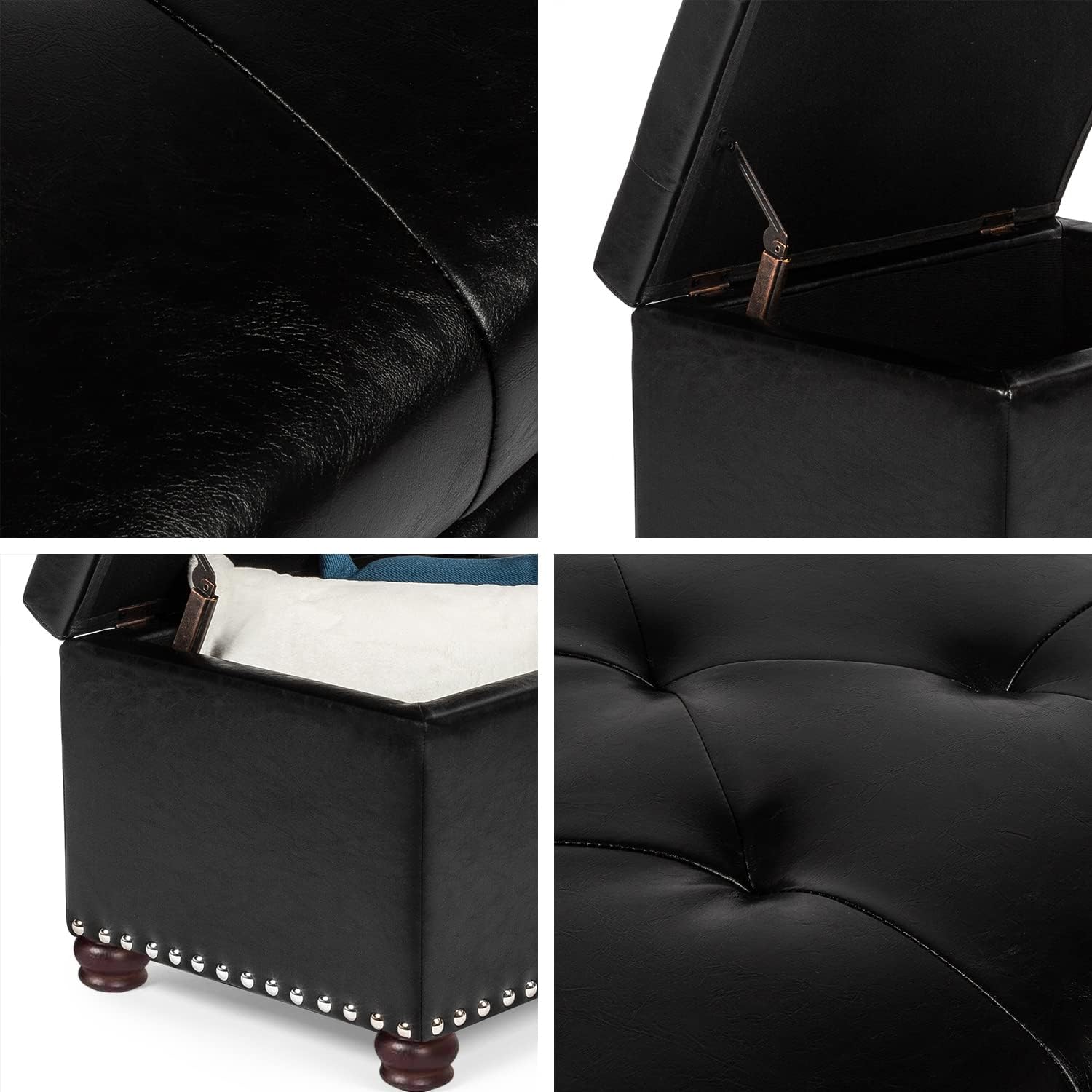 - 【Classic Design】The design of the ottoman foot rest incorporates button tufting,studded trim and a hinged lid.The fine design and craftsmanship make this hassocks and ottomans very strong at the hinge.Its overall construction is very strong and durable.