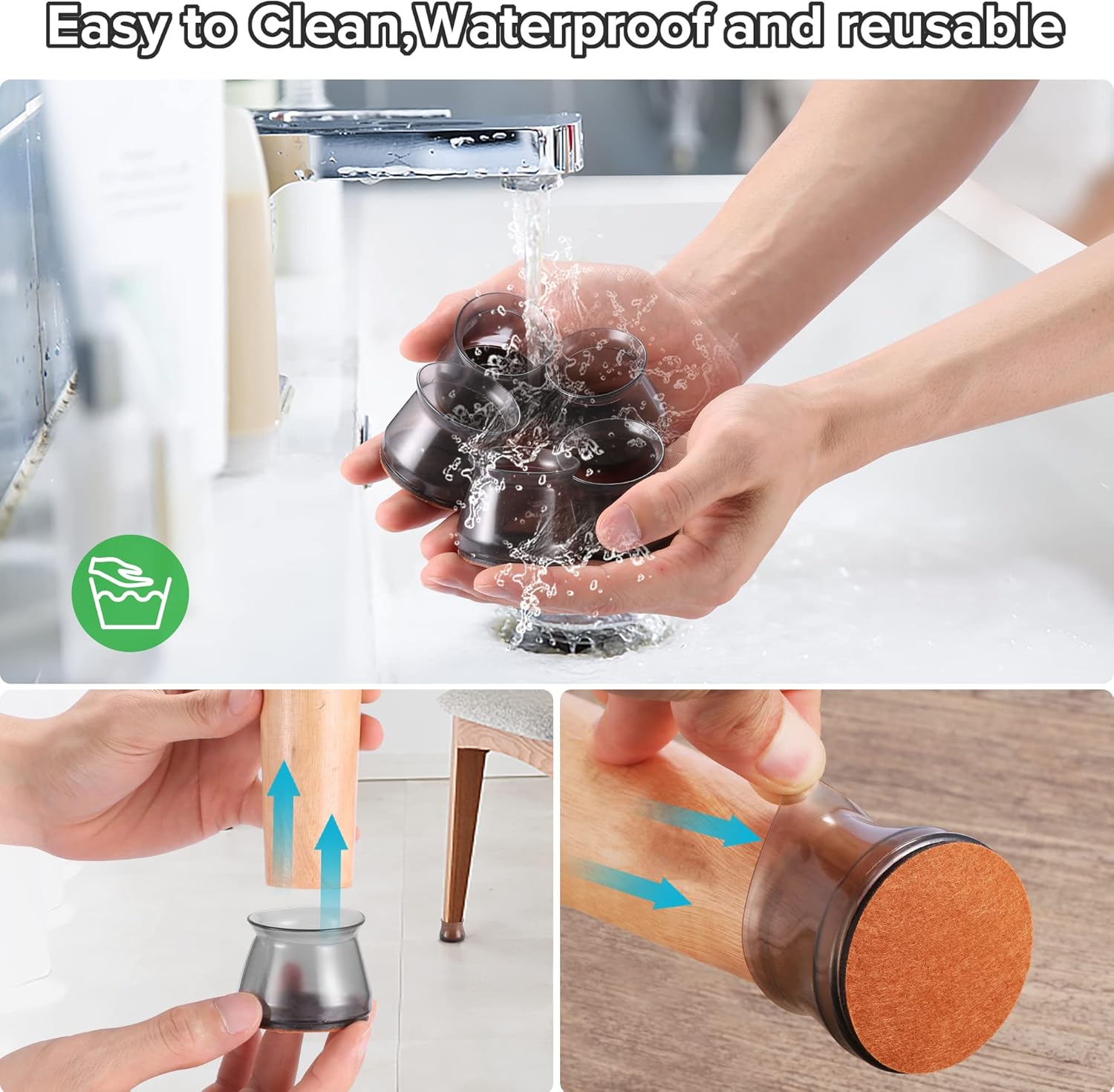 - ✅【Easy to Use】The chair leg covers to protect floors has high transparency, which greatly restore the original color of the table and chair legs, look more natural. The furniture leg cap is easy to install, without the use of tools. When the furniture chair socks are dirty, the chair stoppers can be cleaned and used repeatedly. Mainly suitable for smooth floors such as hardwood, tile, composite floor, and vinyl floor. Clear cap style match with most floors.