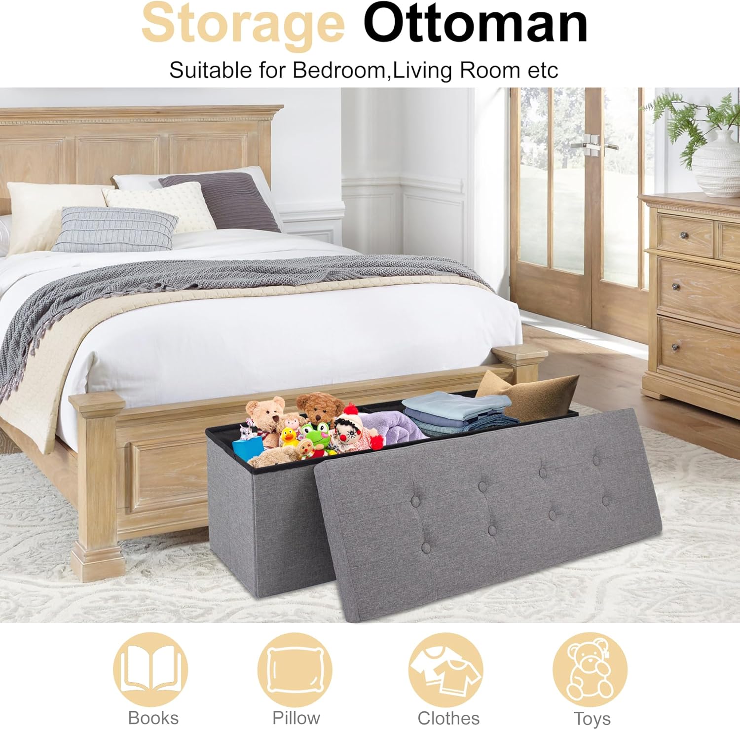 GLAXYFUR 43 Inches Folding Storage Ottoman Bench, Storage Chest, Footrest for Entryway, Living Room, Holds up to 660 lb, Light Grey