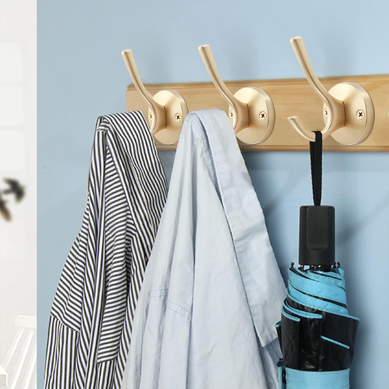 Gold Wall Hooks, 6 Pack Coat Robe Hook Heavy Duty Metal Double Bath Hook Wall Mounted, Hand Towel Hooks for Cubicle Bathroom Kitchen Closet Garage