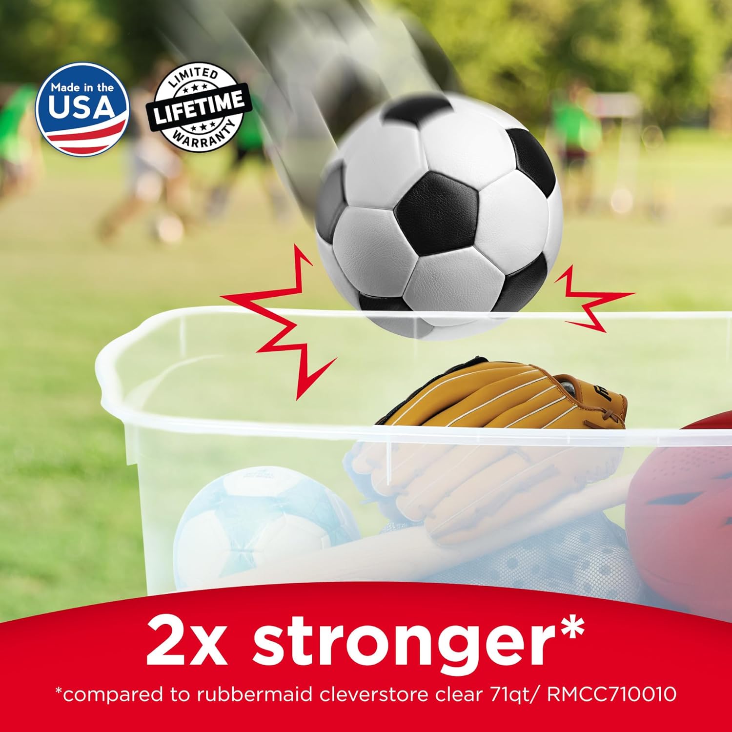 Rubbermaid Roughneck Clear 66 Qt/16.5 Gal Storage Containers, Pack of 4 with Latching Grey Lids, Visible Base, Sturdy and Stackable, Great for Storage and Organization