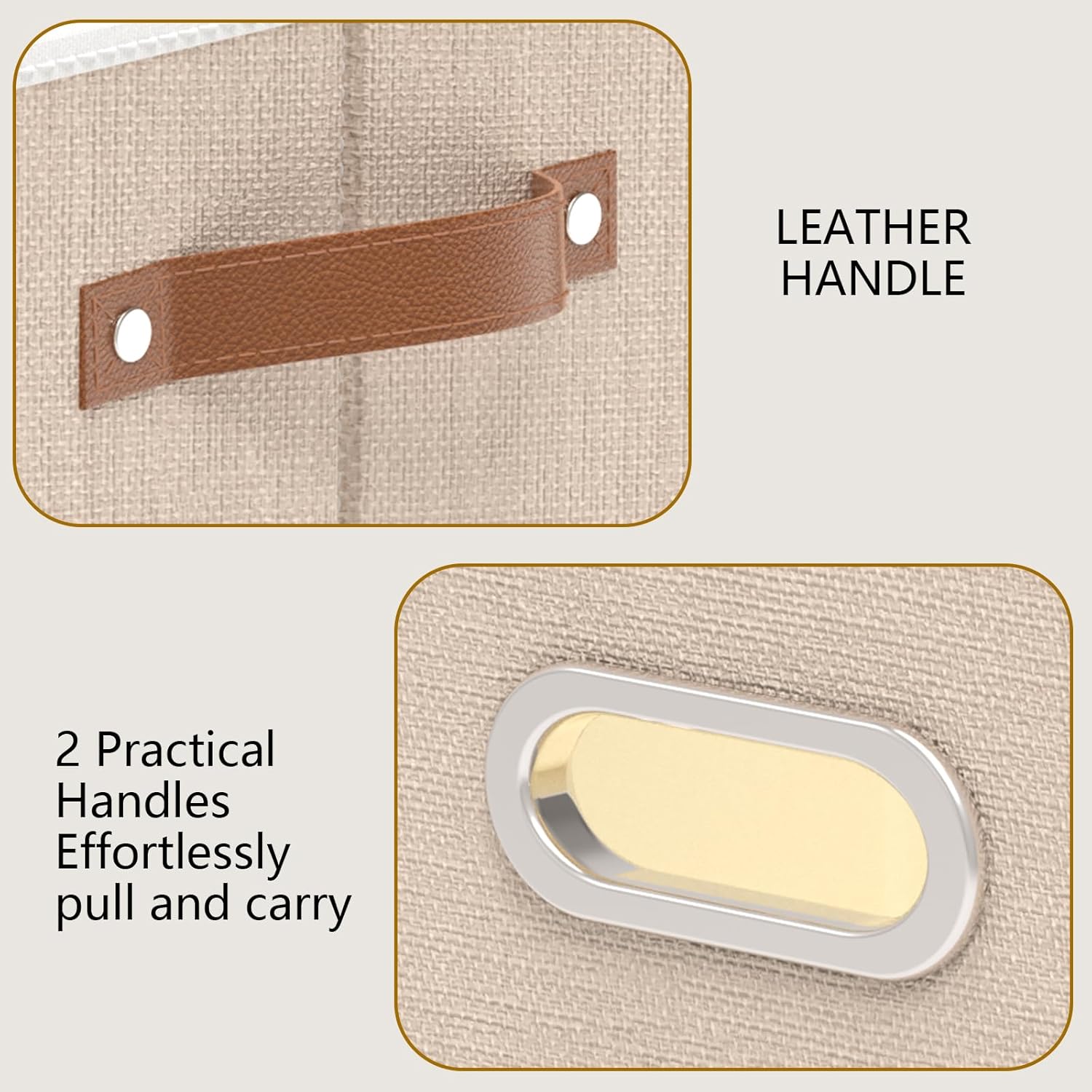 Yawinhe Fabric Storage Bins with Handles, Foldable Baskets for Shelves, Cubes with 3 Handles, Large Boxes for Clothes, Beige, 16.9''Lx11.8''Wx10.2''H, 6-Pack