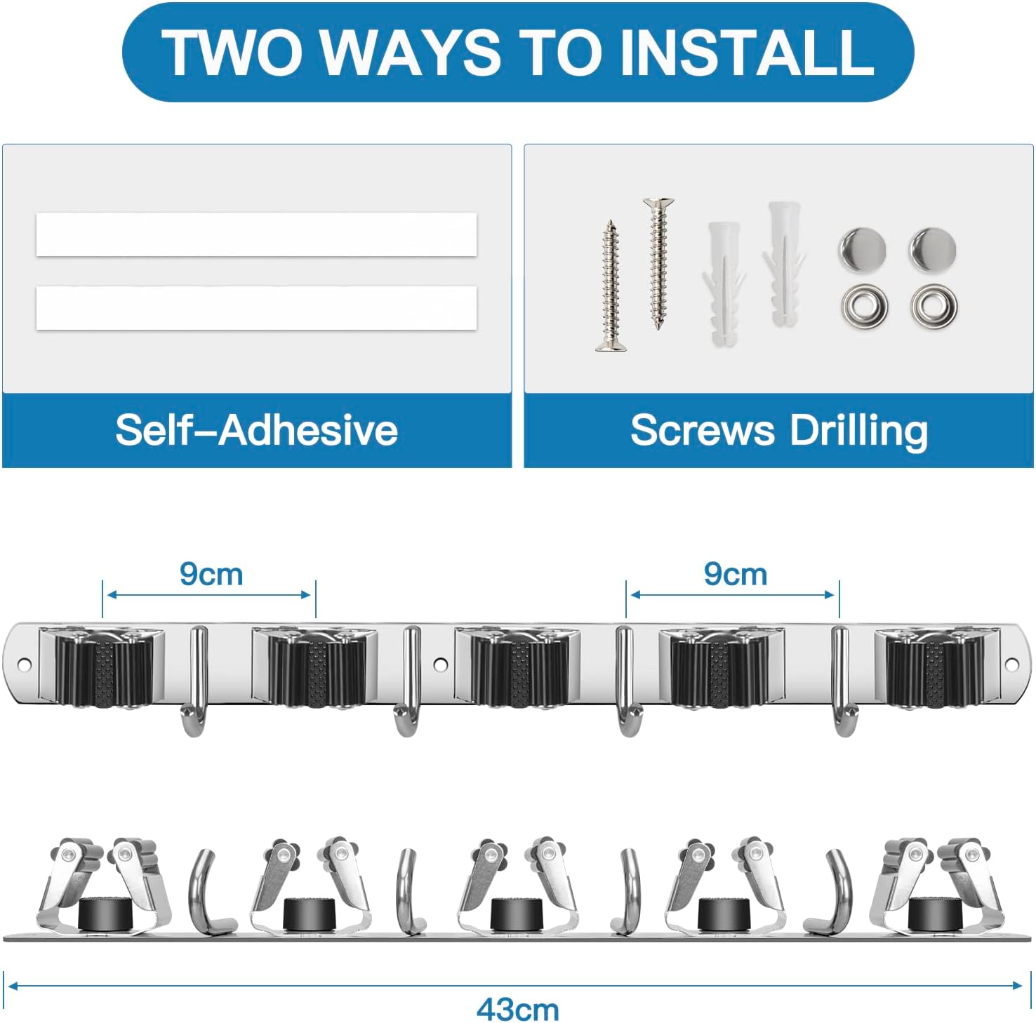 - STRONG & STURDY: Broom organizer wall mount is made of 304 stainless steel, corrosion-resistant, moisture proof and waterproof. Compared with the plastic broom rack, it's more stronger and sturdy. And this broom hanger wall mount can hold up to 200 pounds