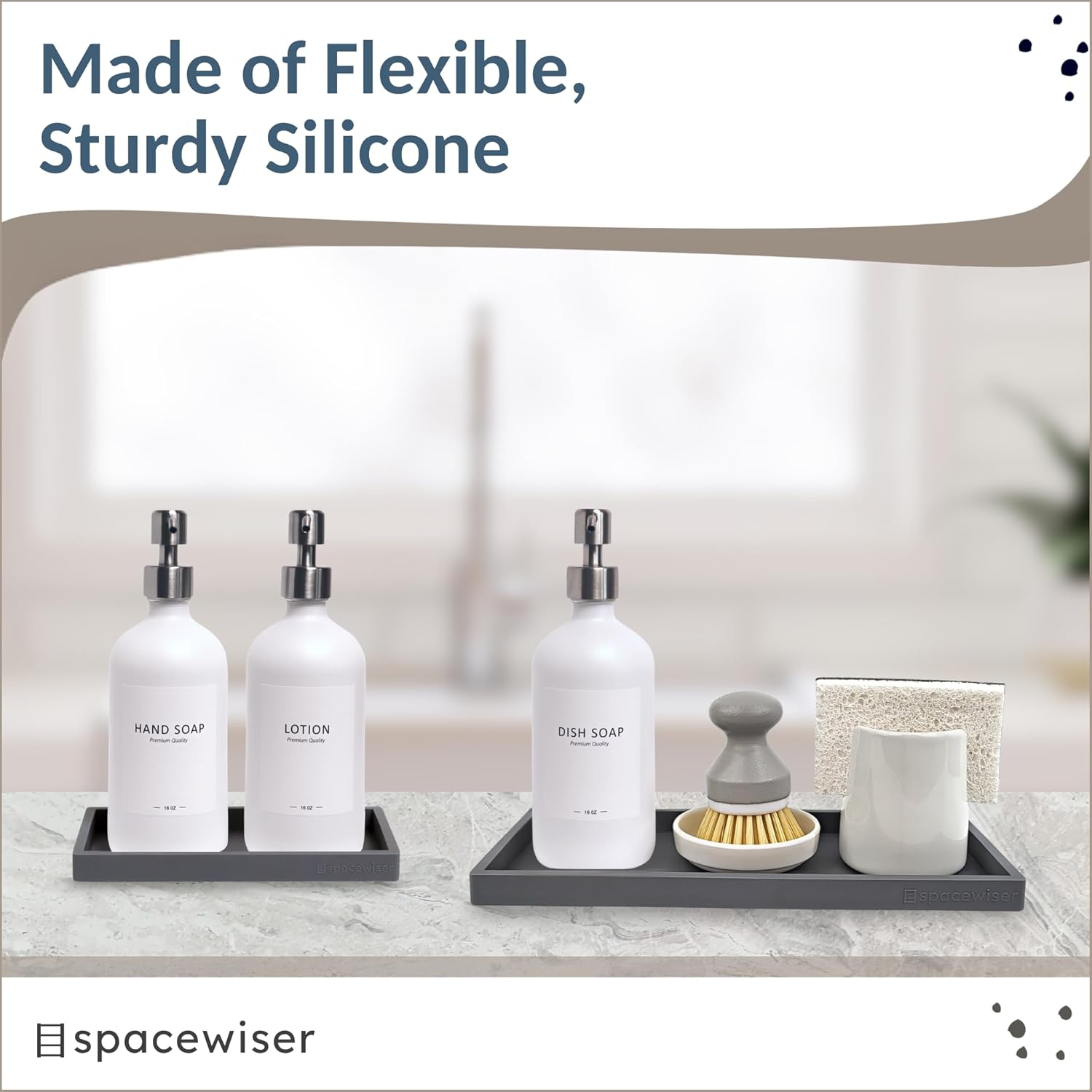 Countertop and Vanity Tray - 2 PC (11” and 7”) Shatterproof Silicone Kitchen and Bathroom Trays for Counter, Kitchen Soap Dispenser Tray, Vanity Trays for Bathroom, Perfume Key Tray