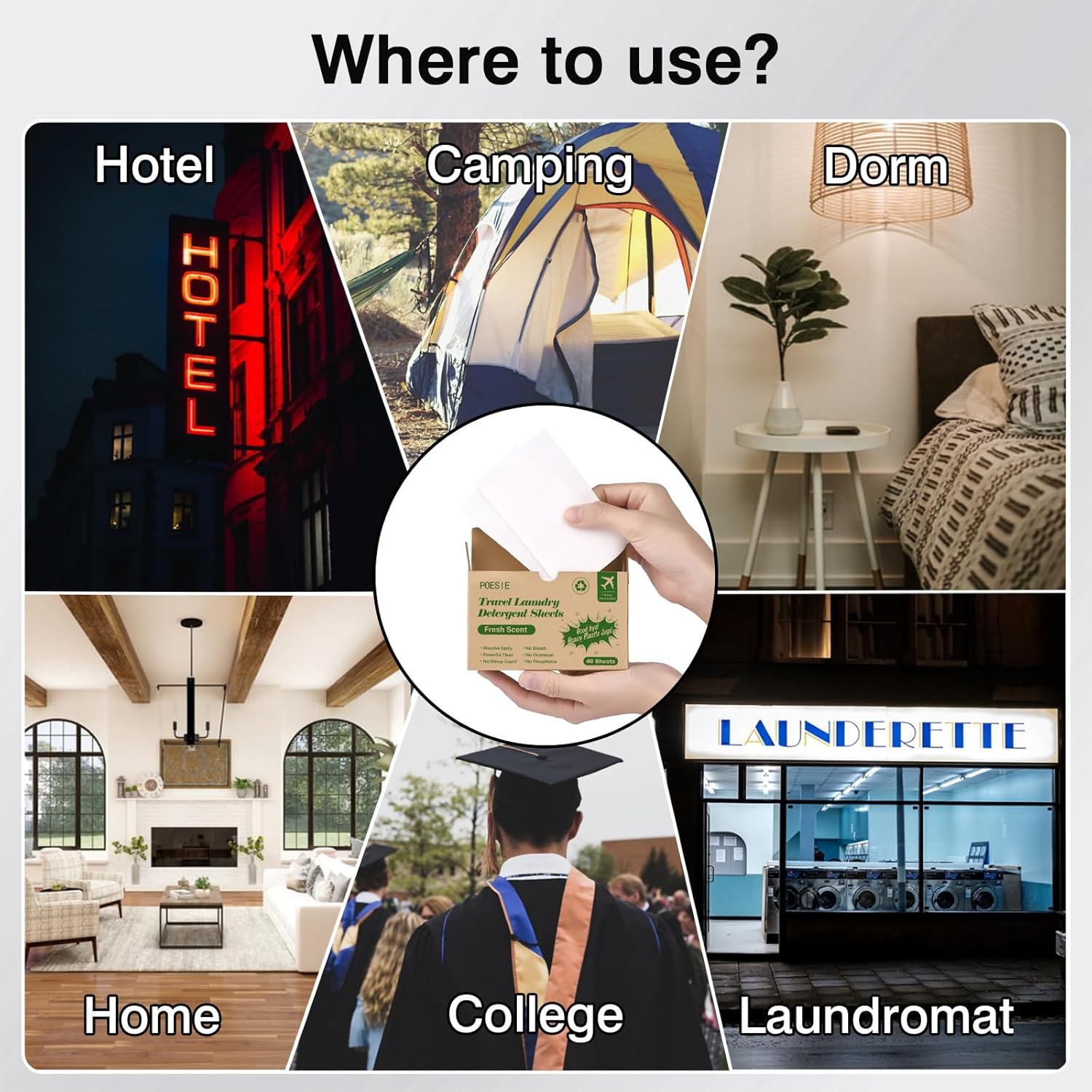 Poesie Laundry Detergent Sheets Washer Sheets for Travel Laundry Soap Sheet for Camping Hotel Dorm Home Laundromat College Fresh Scent 1 Box 40 Count