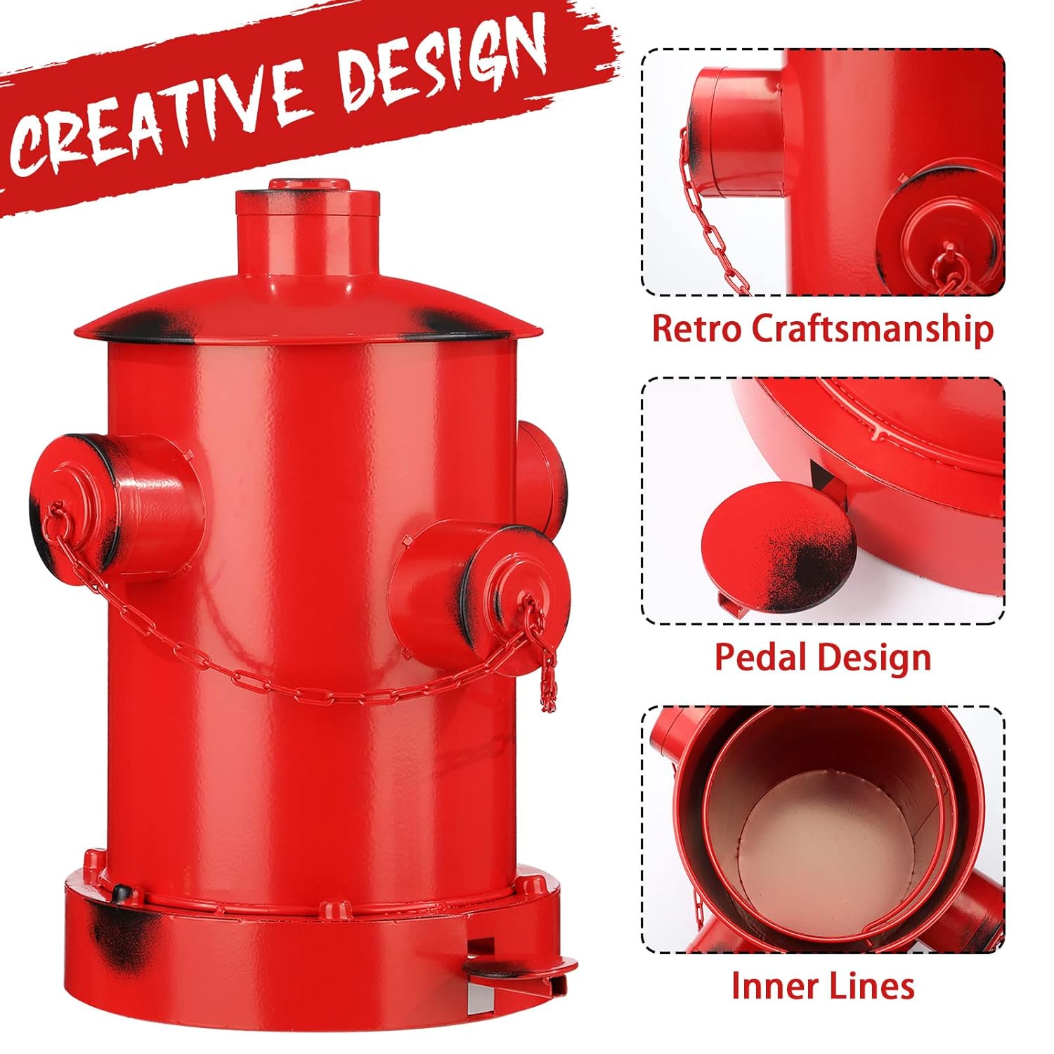 Hoolerry Fire Hydrant Trash Can Retro Creative Garbage Can with Inner Bucket Large Capacity Wrought Iron Pedal Trash Can Indoor Outdoor Waste Bins for Park Garden Kitchen Garbage (Red, Small)