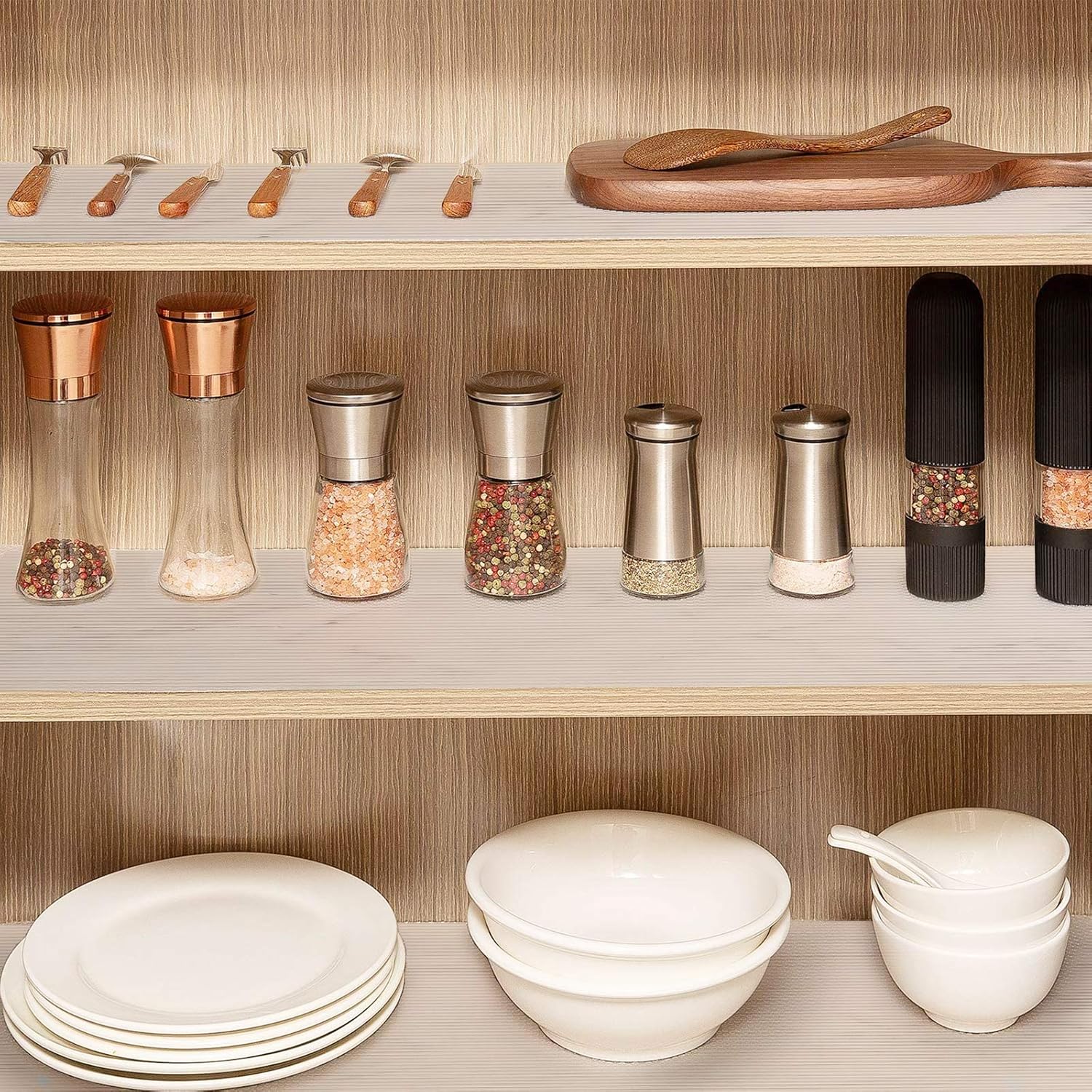 - 👍 EASY INSTALLATION AND NON ADHESIVE- Comes in the most popular pre-cut sizes for easy installation. For unique sizes and shapes, you can simply trim the pantry shelf liner with a household scissor. Just place the shelf liner non adhesive down in your drawer or cabinet and trim off any excess material. Plus, the liners are non-adhesive and easily removable.