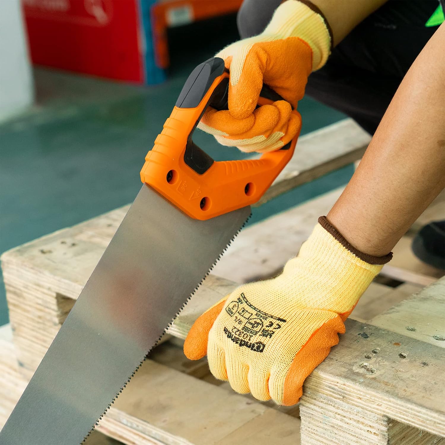• 【LATEX COATED】: ANDANDA safety work gloves with latex coated palm and fingertips, have excellent abrasion resistance, and a strong grip with high dexterity in dry and slightly wet/oily conditions.