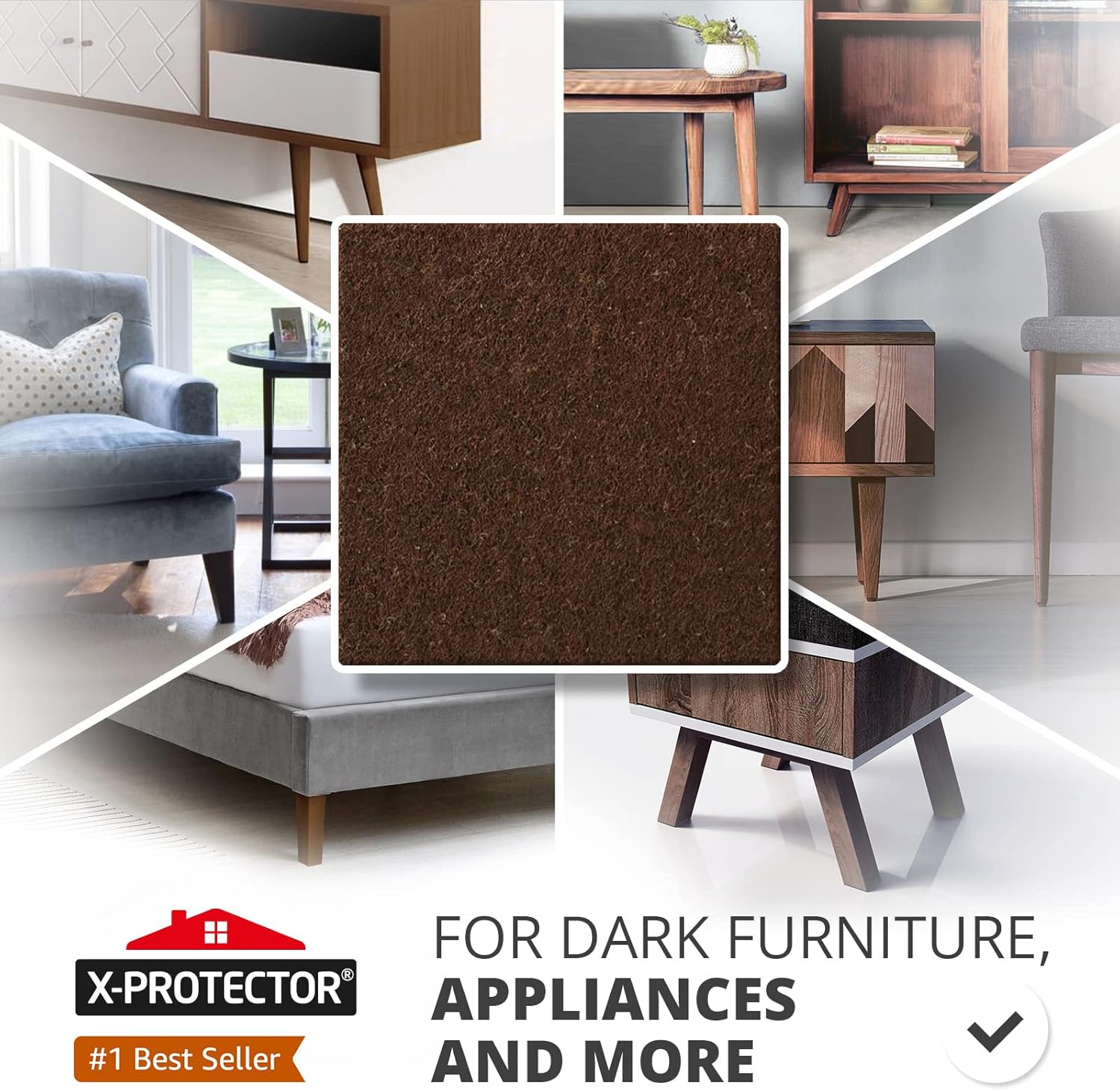 - ✌ X-PROTECTOR STRONG MATERIAL AND TENACIOUS ADHESIVE! Our furniture pads are made of strong eco-friendly material with recycled fibers. Tenacious adhesive guarantees that You can stick it easily to any furniture surface and be sure that it will hold on and protect for a long time.