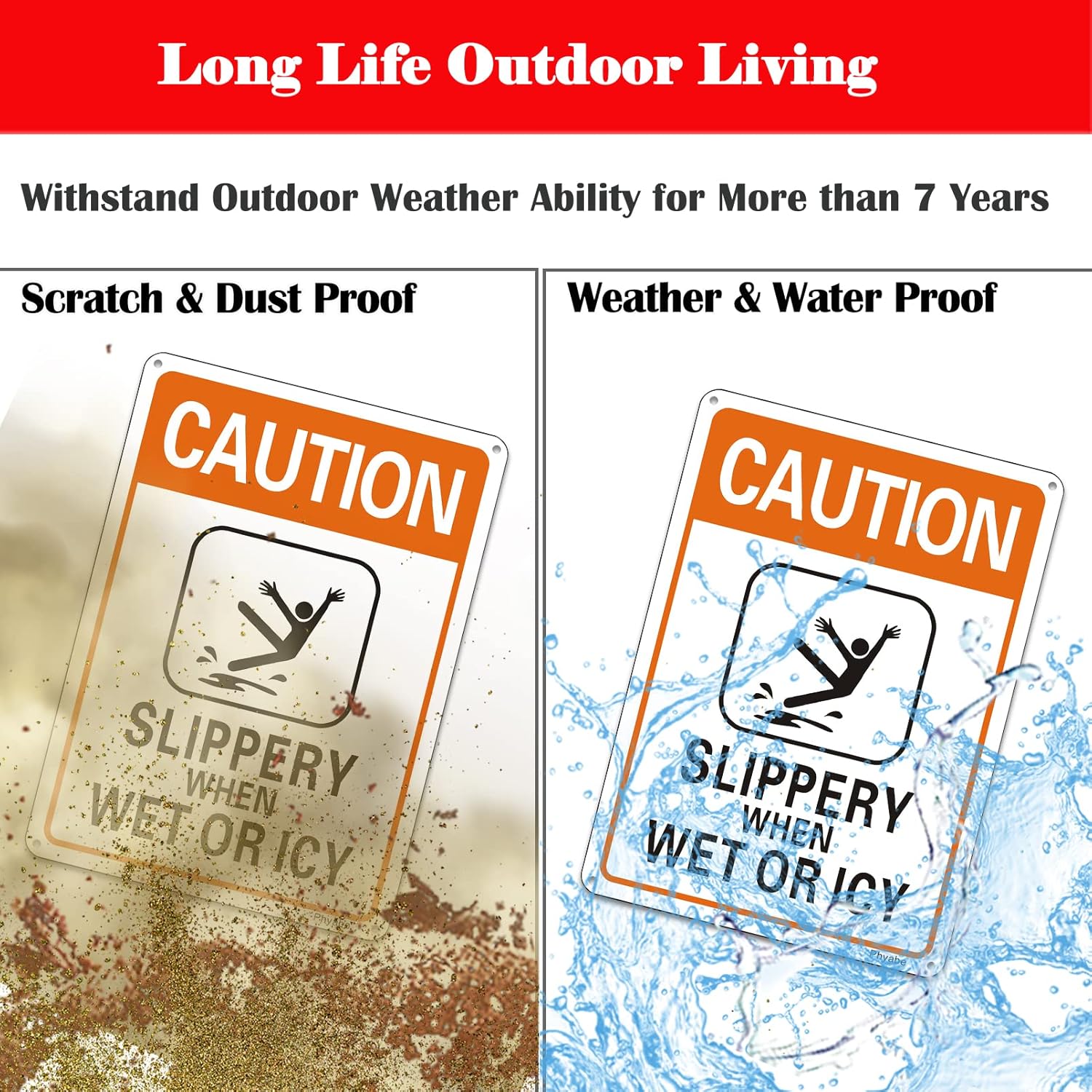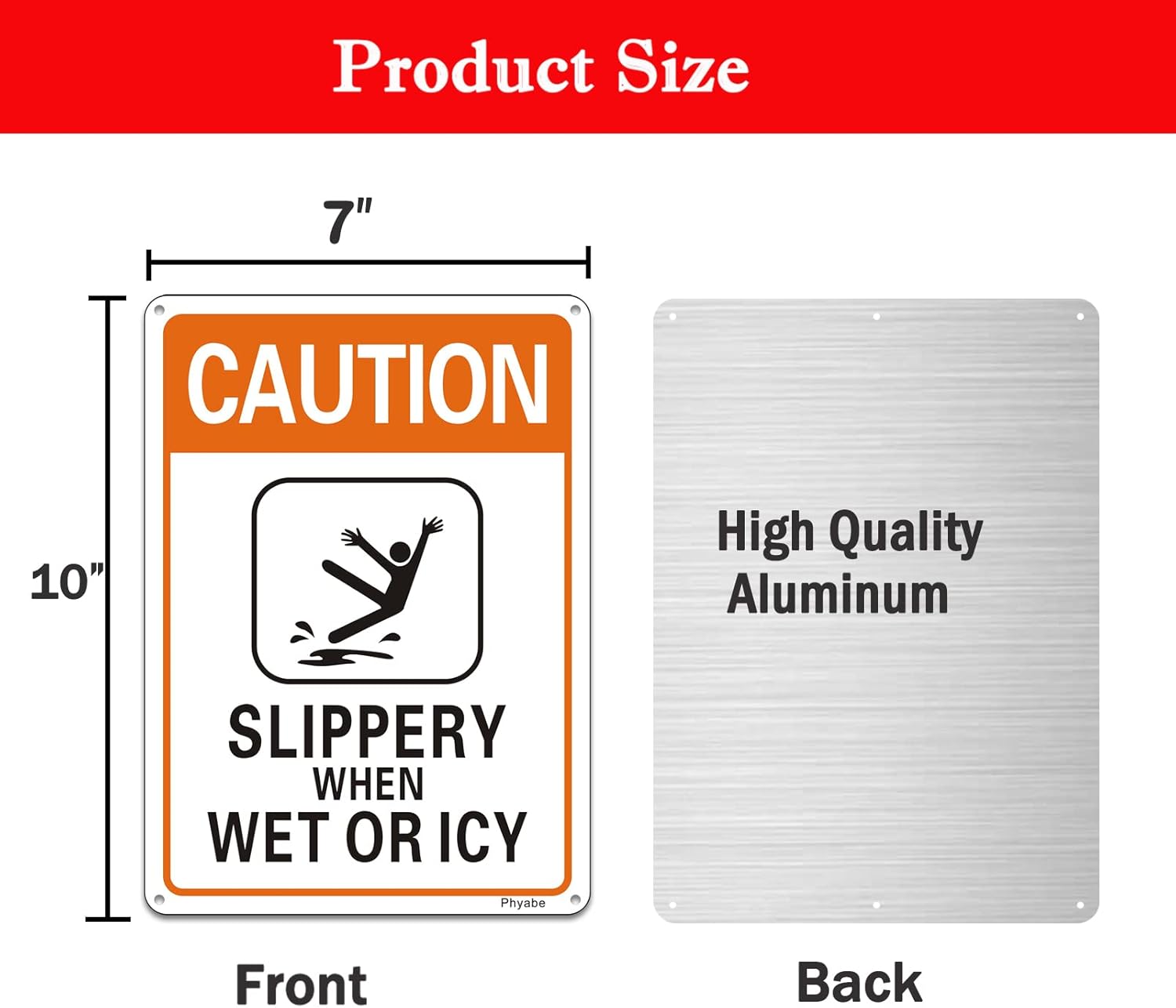 2 Pack Caution Slippery When Wet or Icy Sign, 7” x 10” Metal Rust Free Aluminum Sign, Weather Resistant, Waterproof, Durable Ink, Easy to Install