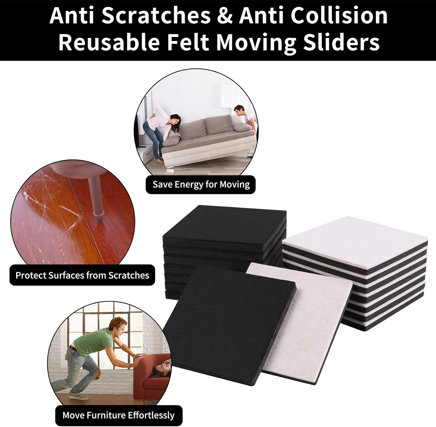 - ❤【Widely Use of Various Furniture】- Heavy duty 5 inch square felt furniture movers sliders Ideal for any heavy duty for Couch / Refrigerator /Tables /Cabinet /Sofas /Beds / Dressers / Recliners, or much more heavy appliances.