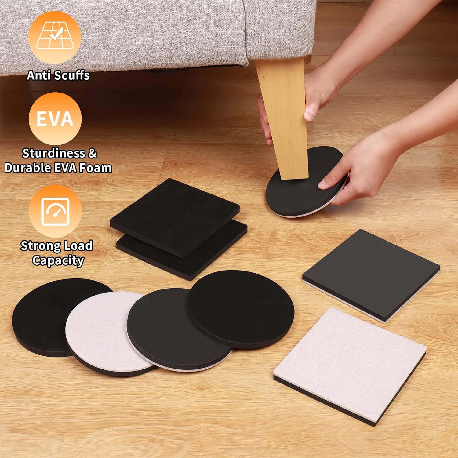 - ❤【Durable Material & Reusable】- Reusable large felt furniture sliders for hardwood floors made of High quality EVA foam and felt pads (non-stick). No need glue to stick and won’t stain your furniture legs and the EVA foam securely grips the furniture for a long-lasting or be removed and reused.