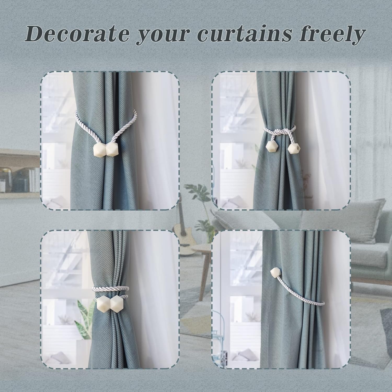 - [Upgrade Powerful Magnetic] Our magnetic curtain tiebacks magnets use high-end new imported nickel-plated magnets, with strong corrosion resistance and durability, more magnetic than ordinary magnetic curtain tiebacks, and do not rust and not lose color. The rope of curtain tie adopts upgrade thickened solid polyester yarn, which is not only durable, but also not easy to wear or pilling.
