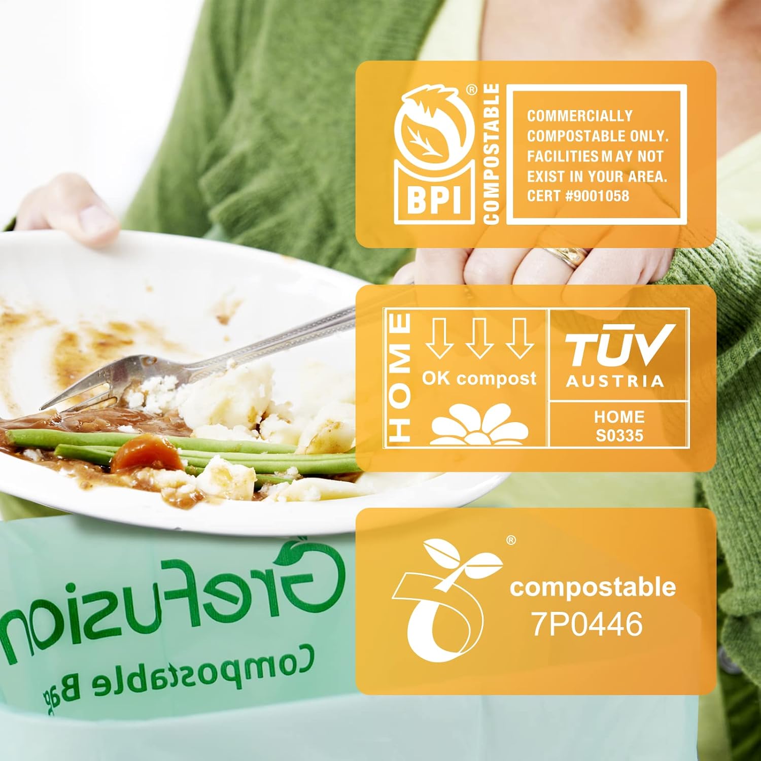- 【STURDY COMPOST BAGS &UPDATE SUPER THICK 0.91 MIL 】We are Proud of update the design of GreFusion compost bag thick with 0.91 Mils for get carry weights up to 17.5 pounds,As kitchen trash can bags are able to withstand a heavy load of wet food waste and hot coffee grounds without any ripping.and sturdy enough with less chance of perforation by sharp leaves. keep a grefusion compost bin bags come in the home and go with confidence to stop the mess .