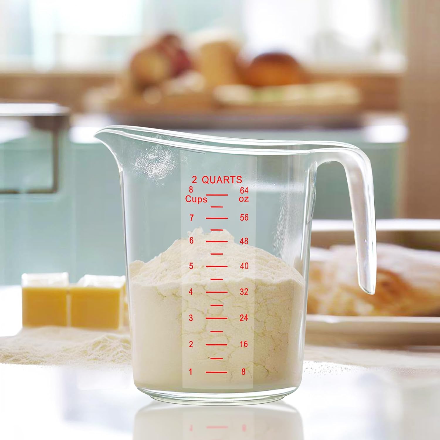 - [MULTIPLE SIZES] The package includes 2 measuring pitchers of the same capacity: 8 cups (64 oz, 2000 ml).