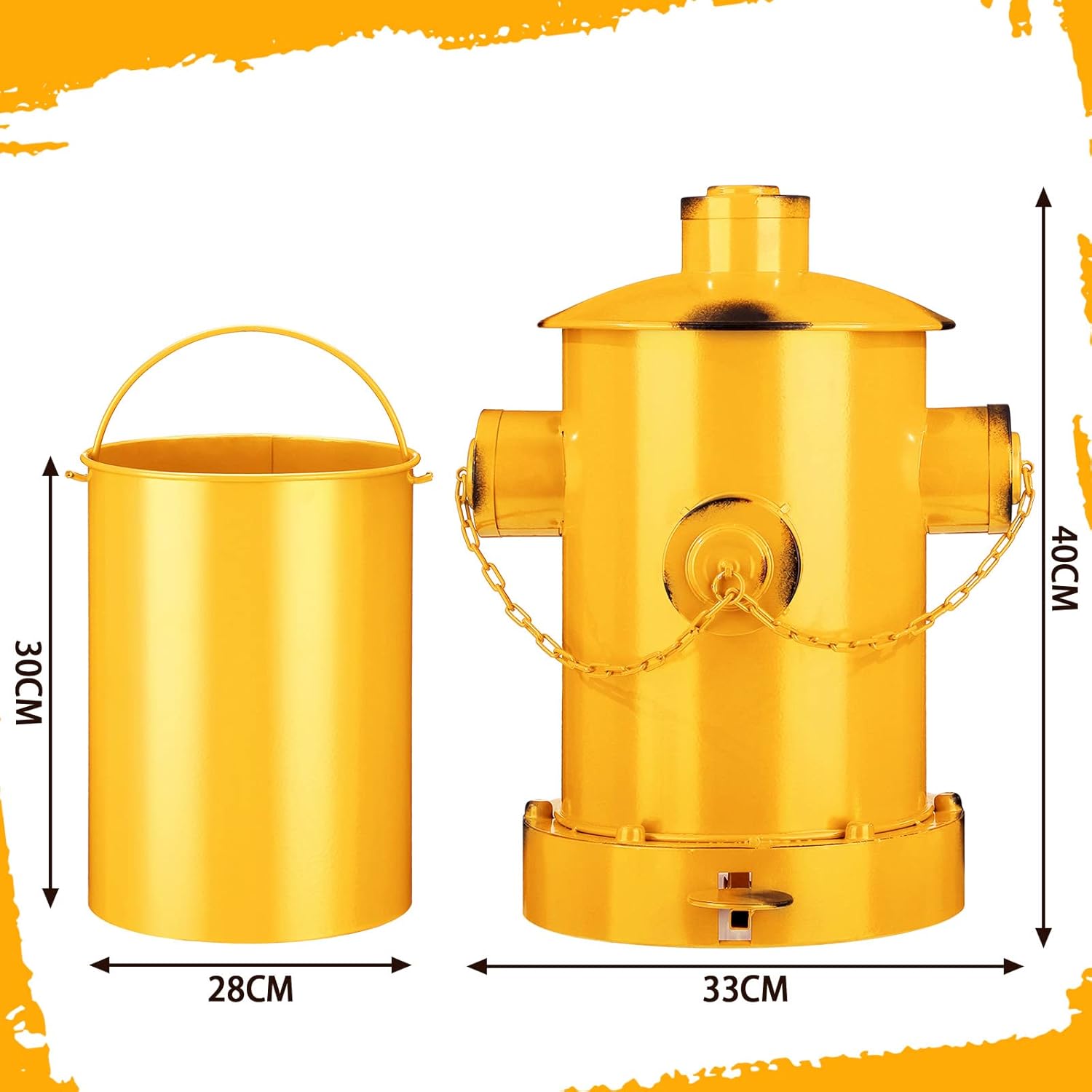 Hoolerry Fire Hydrant Trash Can Retro Creative Garbage Can with Inner Bucket Large Capacity Wrought Iron Pedal Trash Can Indoor Outdoor Waste Bins for Park Garden Kitchen Garbage (Yellow, Small)