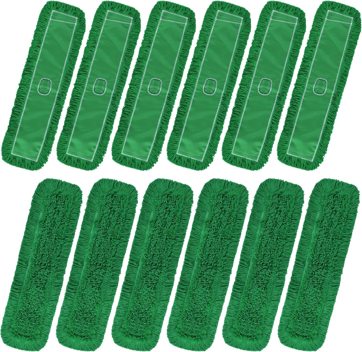 Matthew Cleaning 36'' Industrial Strength Cotton Dust Mop Refill Washable Replacement Heads for Residential & Commercial Use Fit Standard Dust Mop Frames, Hardwood, Concrete Floors Green 12 Pack