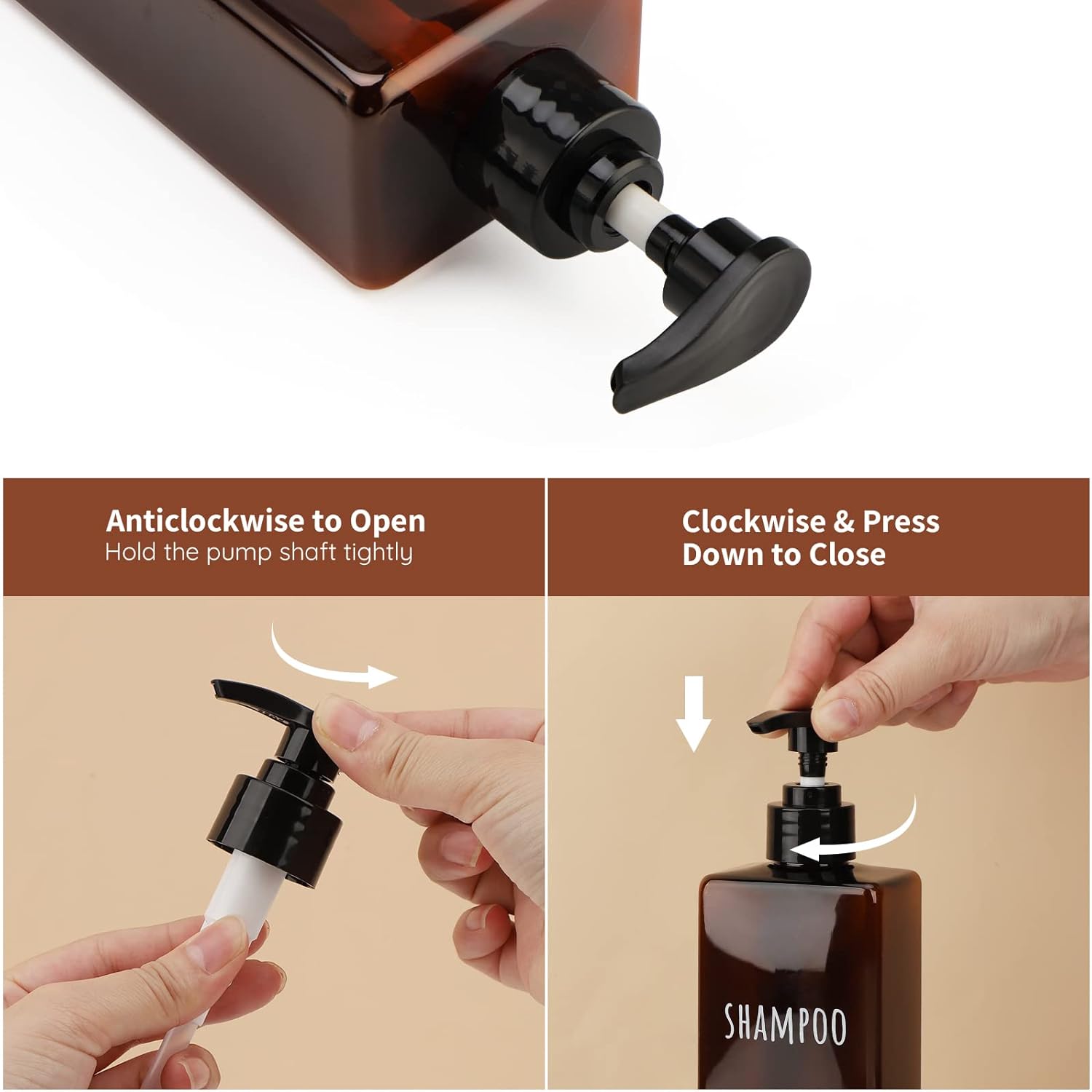 Segbeauty 16.9oz Lotion Dispenser, 3pcs Refillable Square Shampoo Bottles with Pump, 500ml Empty Plastic Bathroom Shower Bottles Liquid Soap Container Body Wash Dispenser for Home Hotel Travel Amber