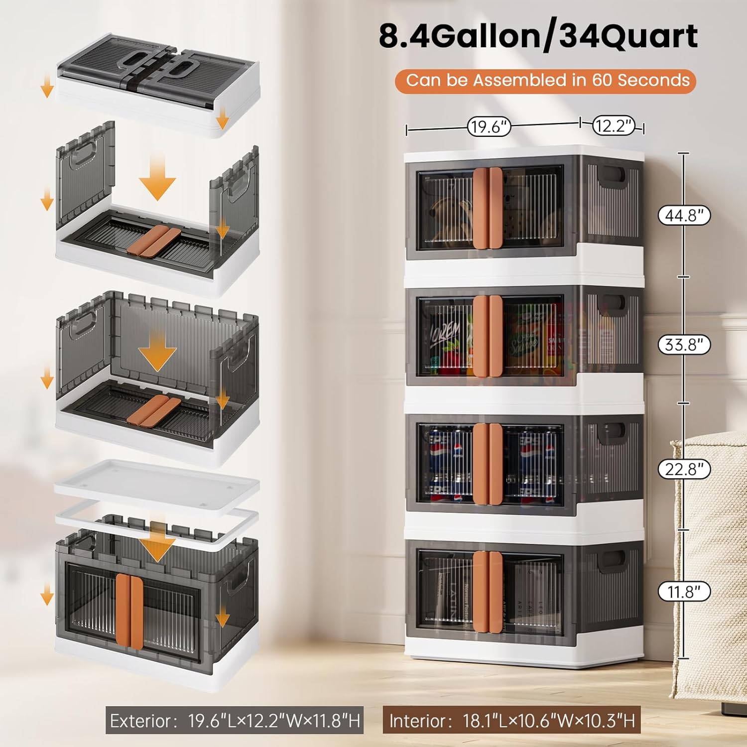 - Special Feature : See-through, Easy to assemble, Stackable, Collapsible, Moveable