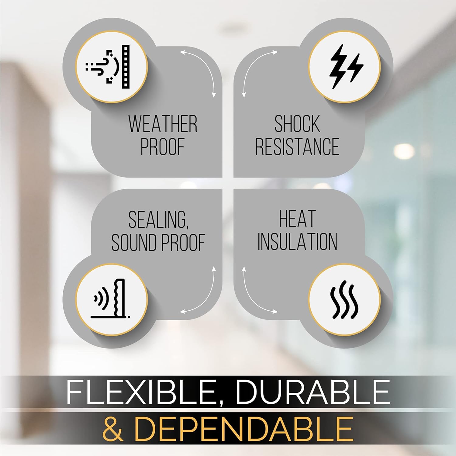 - STRONG ADHESION: Easily weatherproof a front door, winterize windows, home appliances, plumbing components or a vehicle. This adhesive weather stripping supports super strength adhesion to prevent lifting. Stick it in doorjambs, open gaps or edges.