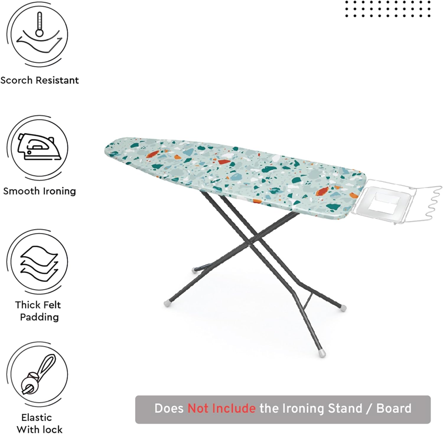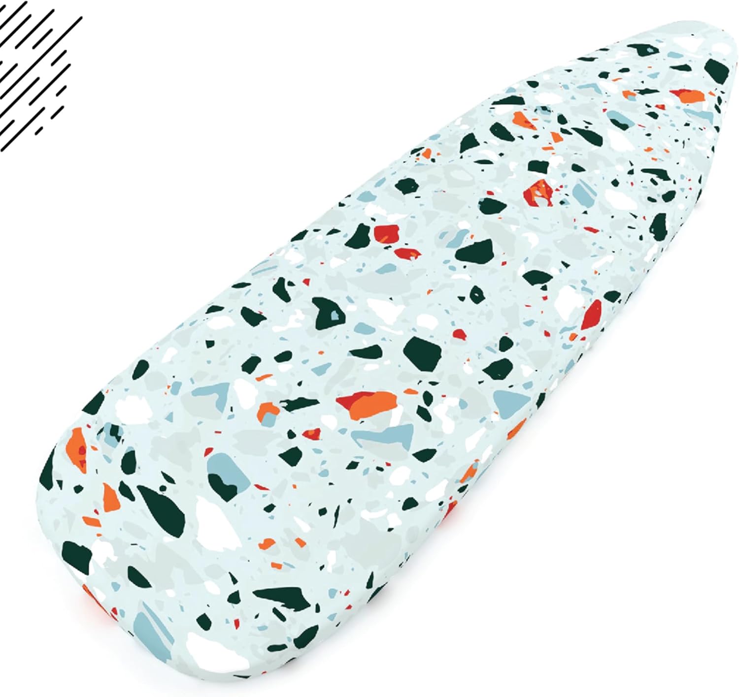 Encasa XO Ironing Board Cover and Pad - Thick 4mm Felt, Heat & Scorch-Resistant, Fits Medium Boards 42"x14", Elastic Bungee Cord Tightening, Easy Fit, Stain-Safe Dye, Terrazzo Mint