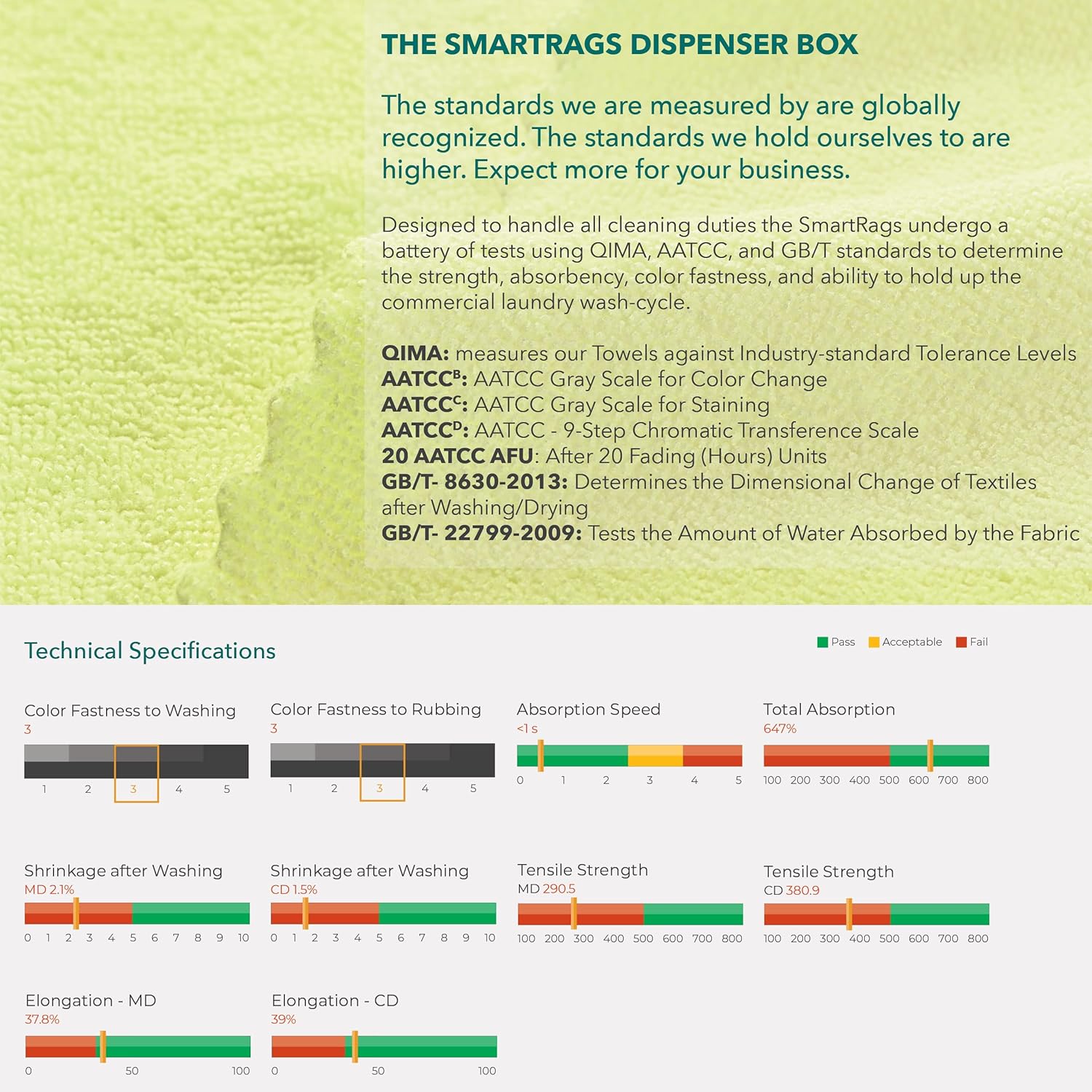 - BETTER MICROFIBER CLOTHS: At 12" x 12", compact 180 GSM microfiber cloths provide ample cleaning surfaces. A compact dispenser box is easily stored in drawers and cabinets. When you clean with SmartRags, you're assured a durable, high-performance cleaning cloth.