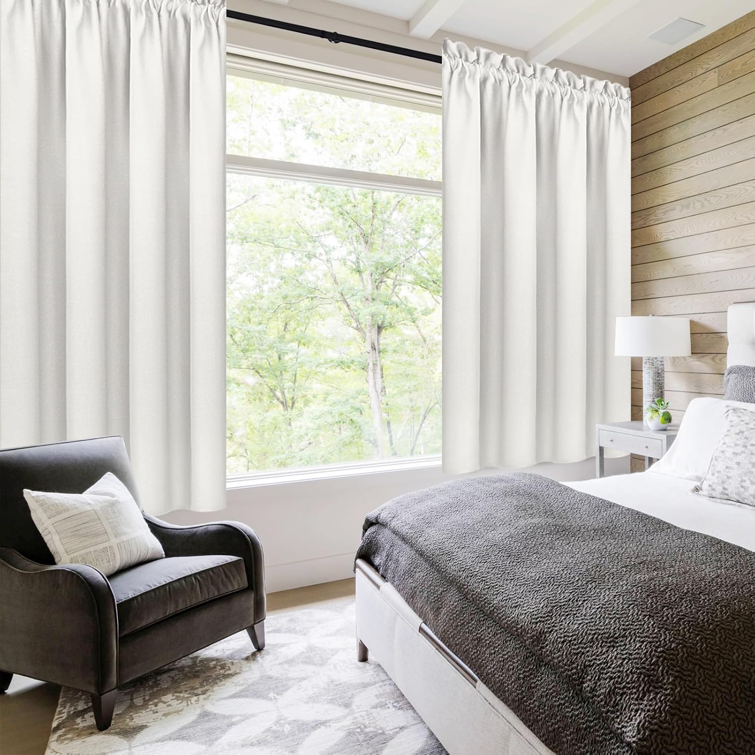 DWCN Blackout Curtains Thermal Insulated, Energy Saving & Noise Reducing Bedroom and Living Room Curtains, Ivory, W 38x L 63 Inch, Set of 2 Rod Pocket Curtain Panels