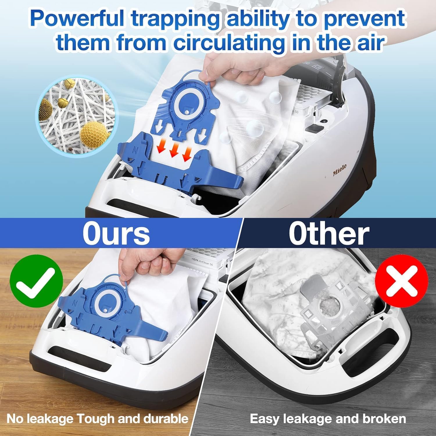 - [Good Airflow Guidance]- Rowhalf AirClean 3D Efficiency Dust Bag with soft structure technology, air can easily pass through the bag, allowing your Miele vacuum cleaner to maintain efficiency at low suction settings. Effective in blocking over 99.97% of dust and 0.3 micron particles and other debris, improving the air quality in your home.