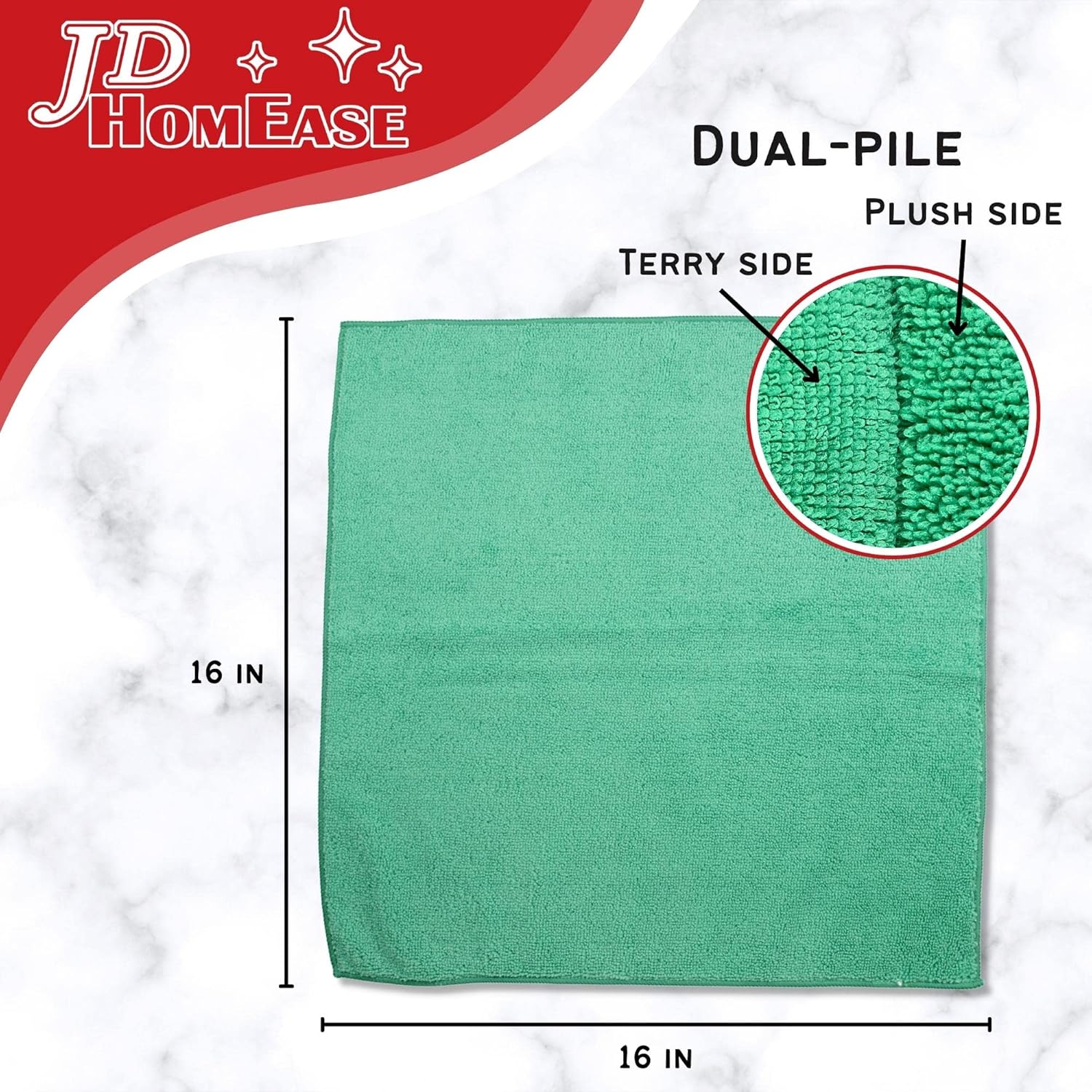 Microfiber Cleaning Cloths,48 Pack, 16"x16", All-Purpose, Softer, Highly Absorbent, Lint-Free, Reusable, Washable Pro Towels, Green, for House, Kitchen, Bathroom, Car, Office