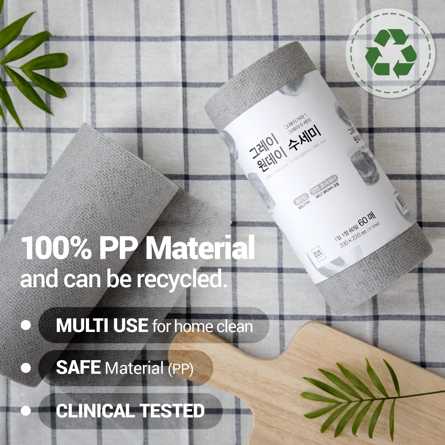 DEARCUS Gray One Day Scrubber - No Odor Dishcloths for Washing Utensils, Cookware, & Cooktop – Multipurpose Lint Free Cleaning Cloths for Kitchen Made of PP - for One Day Use, 2 Pack 120 Sheets