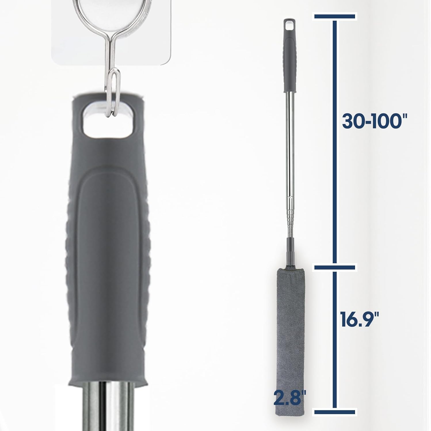 - EXTEND YOUR REACH: Clean from ceilings to baseboards with our strong extension pole. Made of durable, lightweight stainless steel, it adjusts from 15.7 to 74 inches. No more stepping on ladders or crouching on the ground