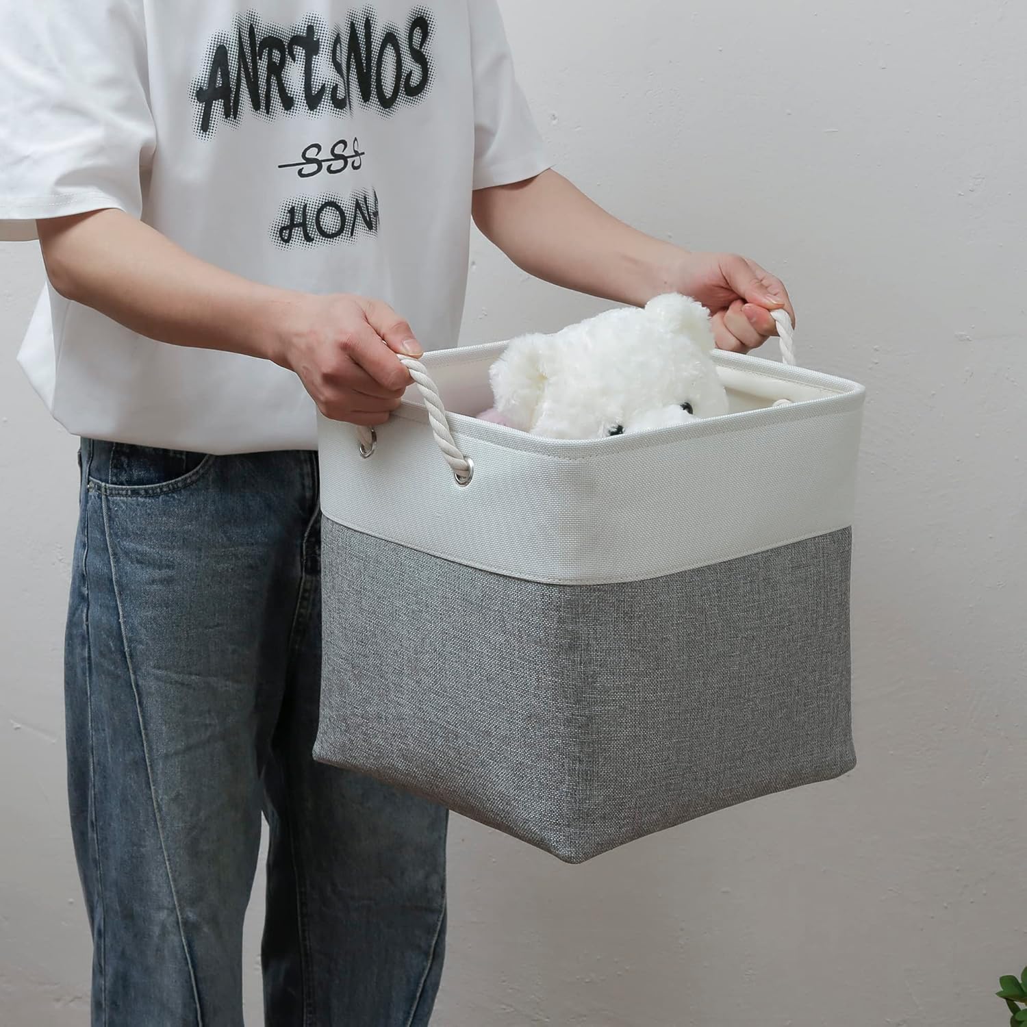 - ❤【Portable & Collapsible】 13 x 13 Inch Cube Storage Bins made from high-quality linen, and thickened EVA. The sturdy metal rod frame at the top keeps the shape of the basket. This basket allows for long term storage.