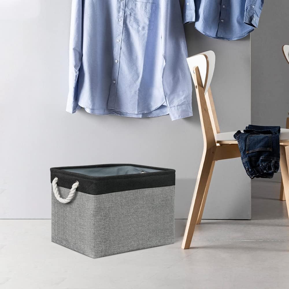 TcaFmac Organization and Storage Basket for Shelves - 16x12x12 inch Large 2 Pack Collapsible Storage Boxs for Organizing, Fabric Storage Cubes for Closet Cloth Toy Books Kids(Black&Grey)