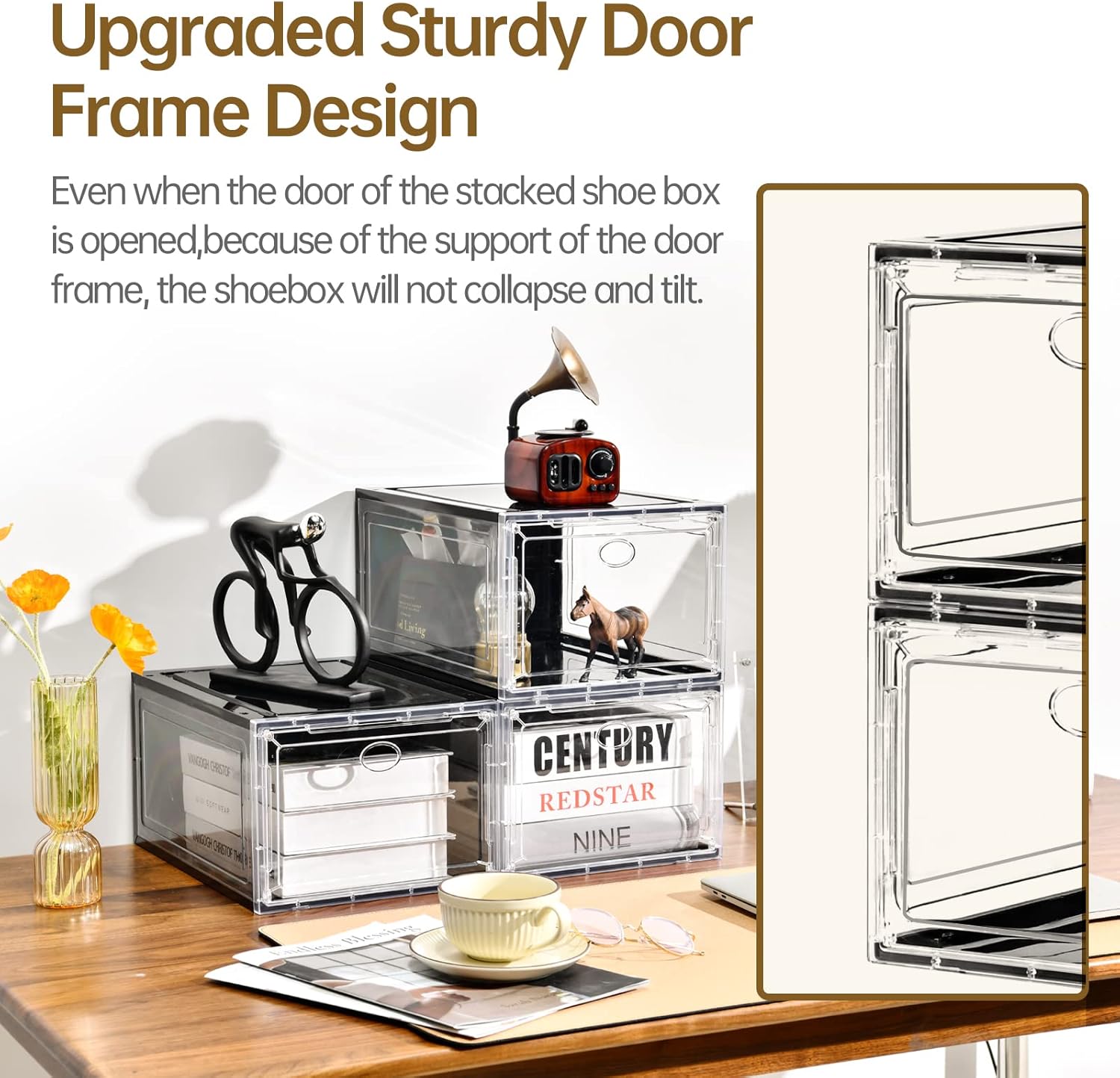 - [Dustproof, Moisture-Proof] Our shoe storage boxes are made of high density material,effectively protect shoes from dust and moisture.
