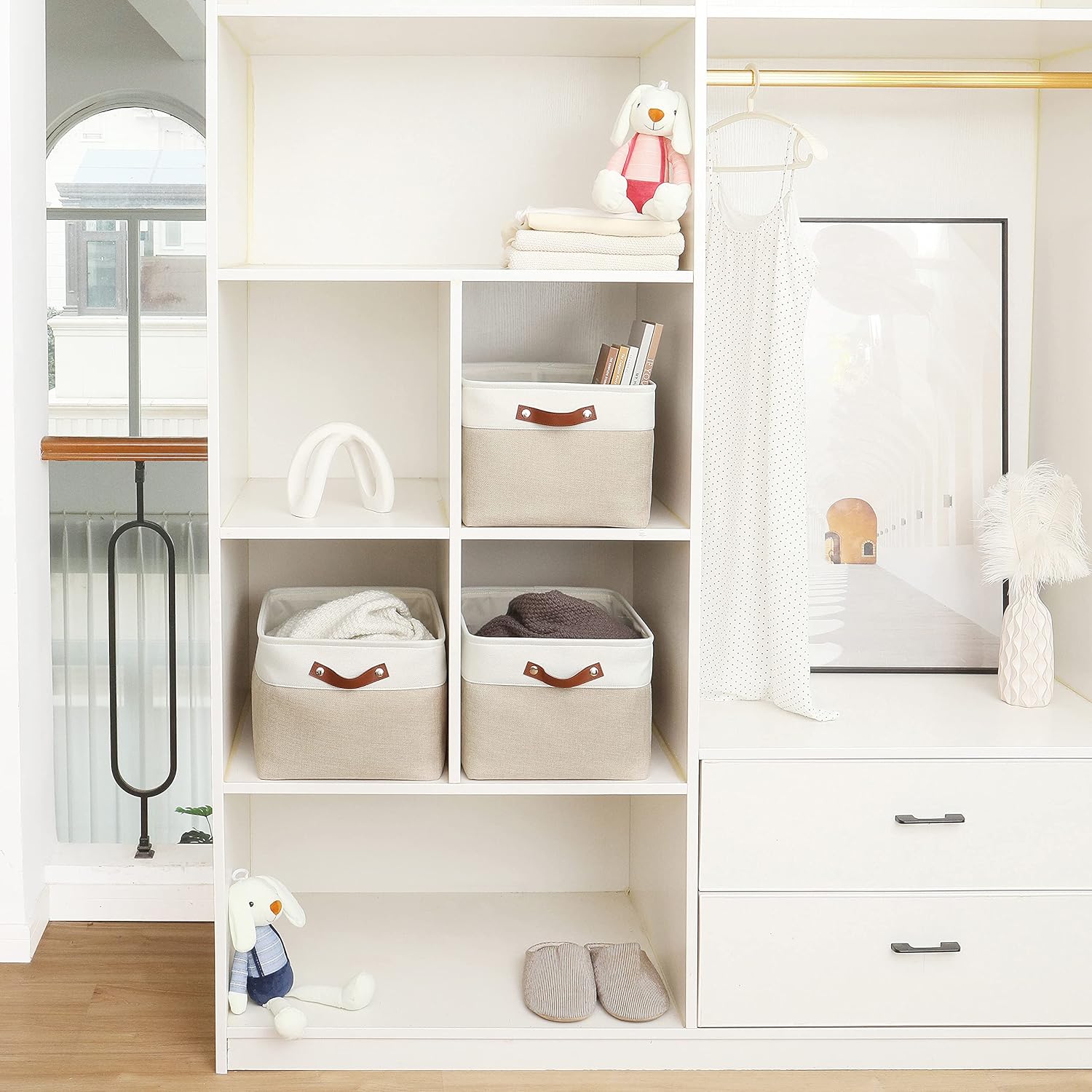OrganiHaus Extra Large Fabric Storage Bins for Shelves 16x13in, Closet Storage Baskets for Shelf Organizing, Canvas Rectangle Bins for Organization, Linnen Baskets for Organizing - Beige/Off-White