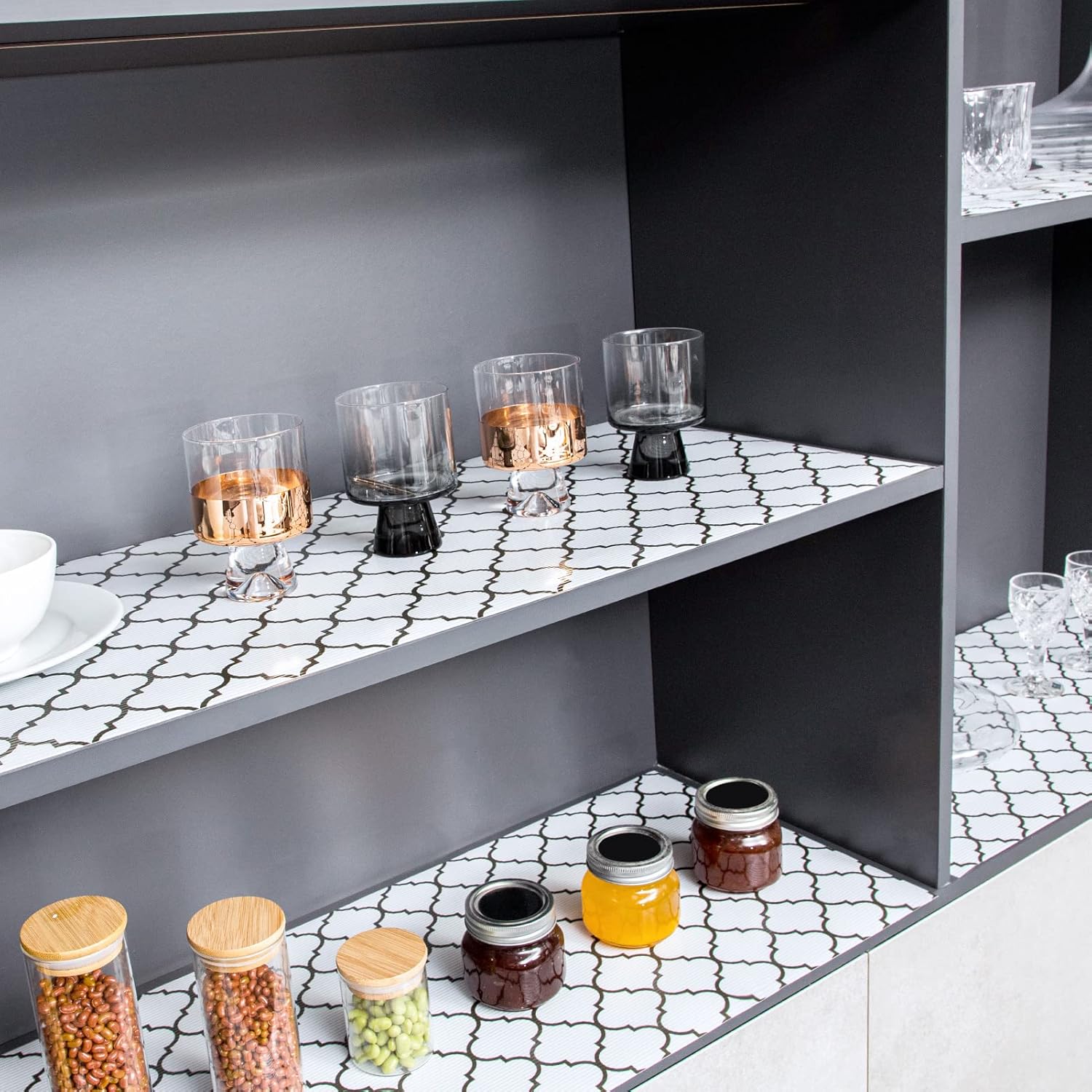 Glotoch 17.5"X 96" Shelf Liners for Kitchen Cabinets-Non Adhesive Cabinet Liners for Shelves, Waterproof Drawer Liner for Kitchen Fridge/Wire Shelf/Bathroom, Pantry, Durable, Non Slip, White And Balck