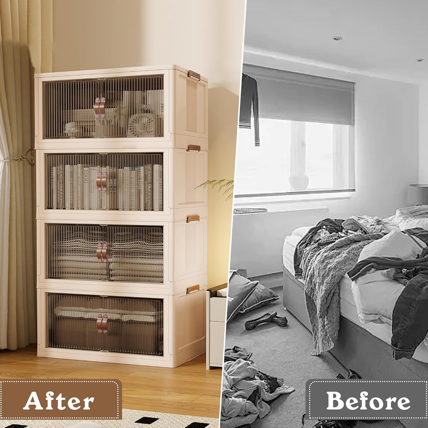 - ♥【Very easy, stackable】 - No tools are required for installation. The notches on the stackable storage bins are designed to make them more securely stacked without tipping over, and flip the snaps to stack them together. It can be easily folded away when not in use, saving space. This makes it ideal for use in small spaces.