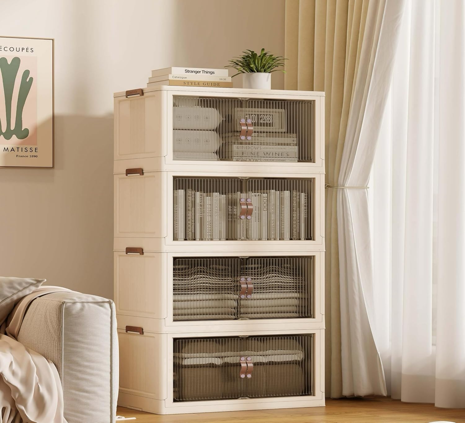 SAILUN 109Gal/434Qt Stackable Storage Bins Folding Collapsible Storage Bins with Lid, Closet Organizers and Storage Box Beige 26" W x 17" D x 56.7" H