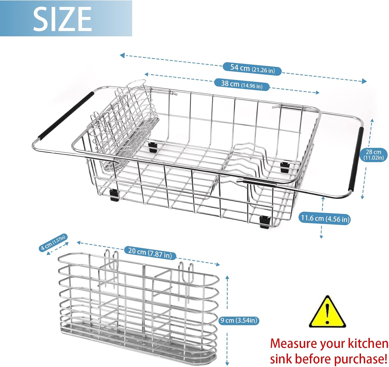 - Non-slip: extendable rubber arms keep the rack from sliding into the sink, and four rubber-coated feet protect the countertop and sink from scratches.