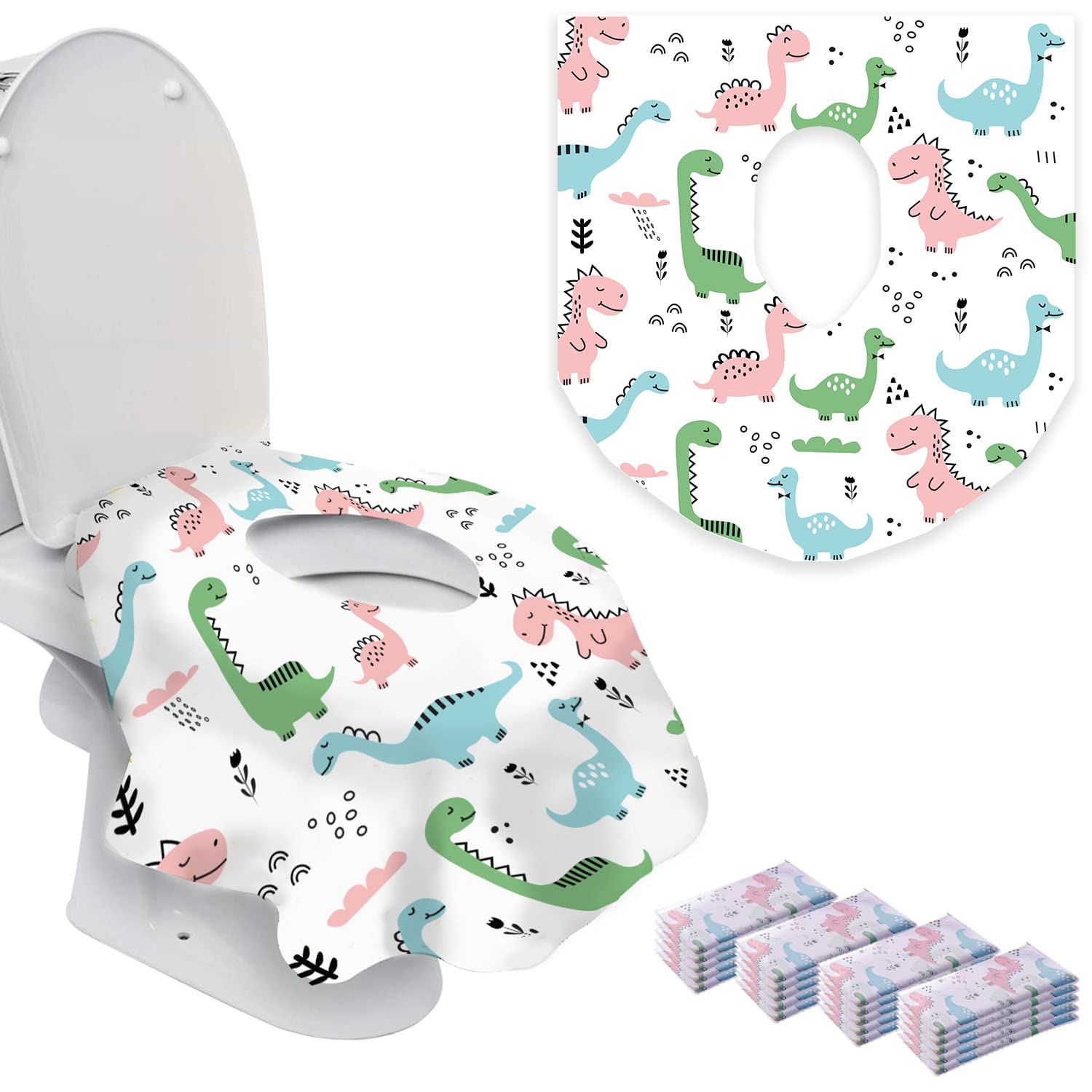 - ADORABLE TODDLER TOILET SEAT COVER: Kiddos love the cute gender neutral Bee design and ultra-soft feeling of these Dinosaurs & Pink toilet seat covers disposable. Upgrade their potty training experience today!