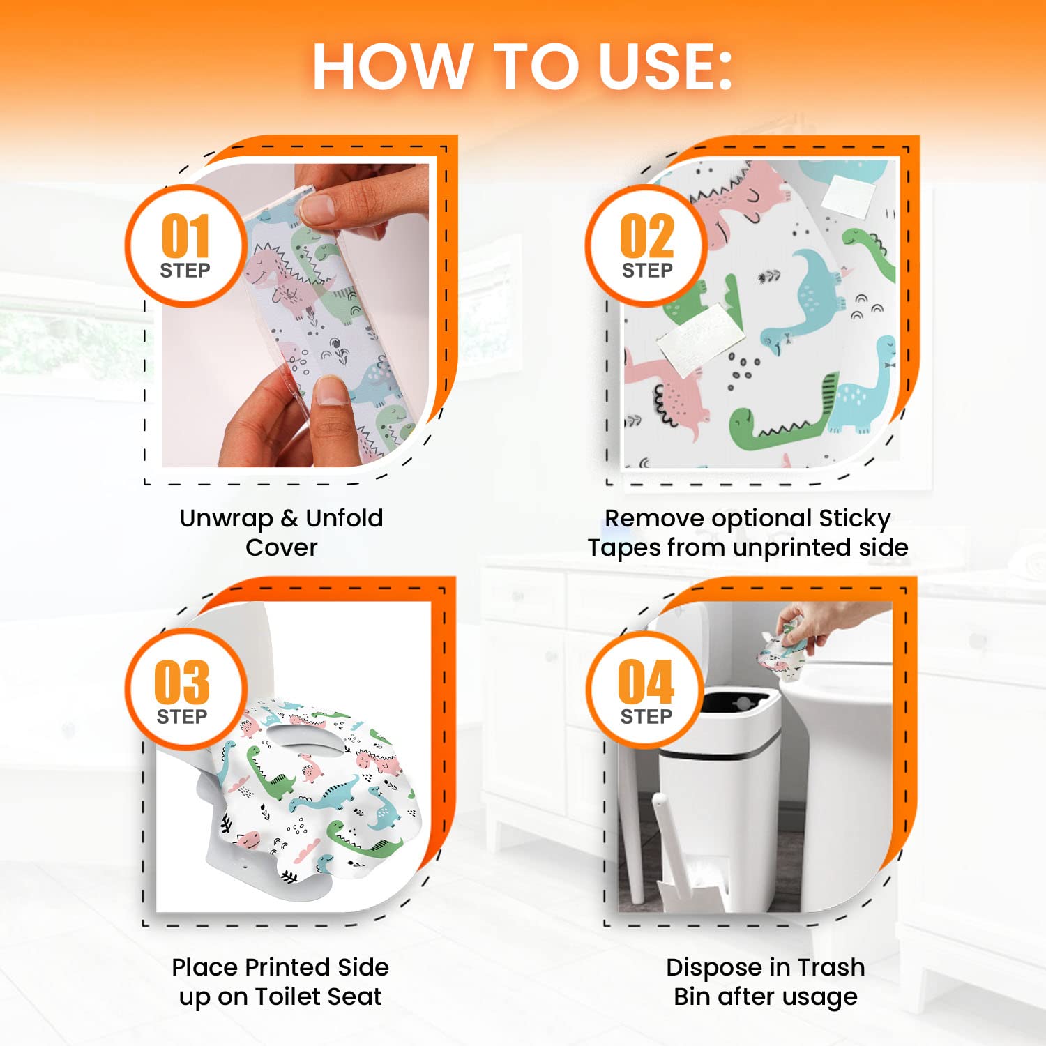 - WATERPROOF PORTABLE POTTY SOLUTION FOR KIDS: Our disposable kids toilet seat covers include dual layers to keep your little one 100% dry. These toddler potty covers fully cover the sides & front and its best for kids potty seat toilet cover