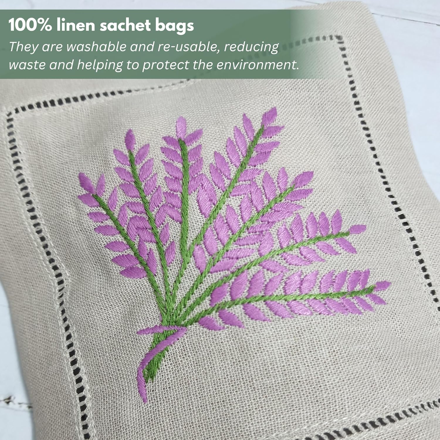 - If you're looking for a way to add a touch of elegance to your home or special event, while also being environmentally conscious, look no further than these 100% linen sachet bags. These beautiful and well-made bags are perfect for a variety of uses, from holding dried lavender for a calming scent to storing small items like jewelry or herbs.