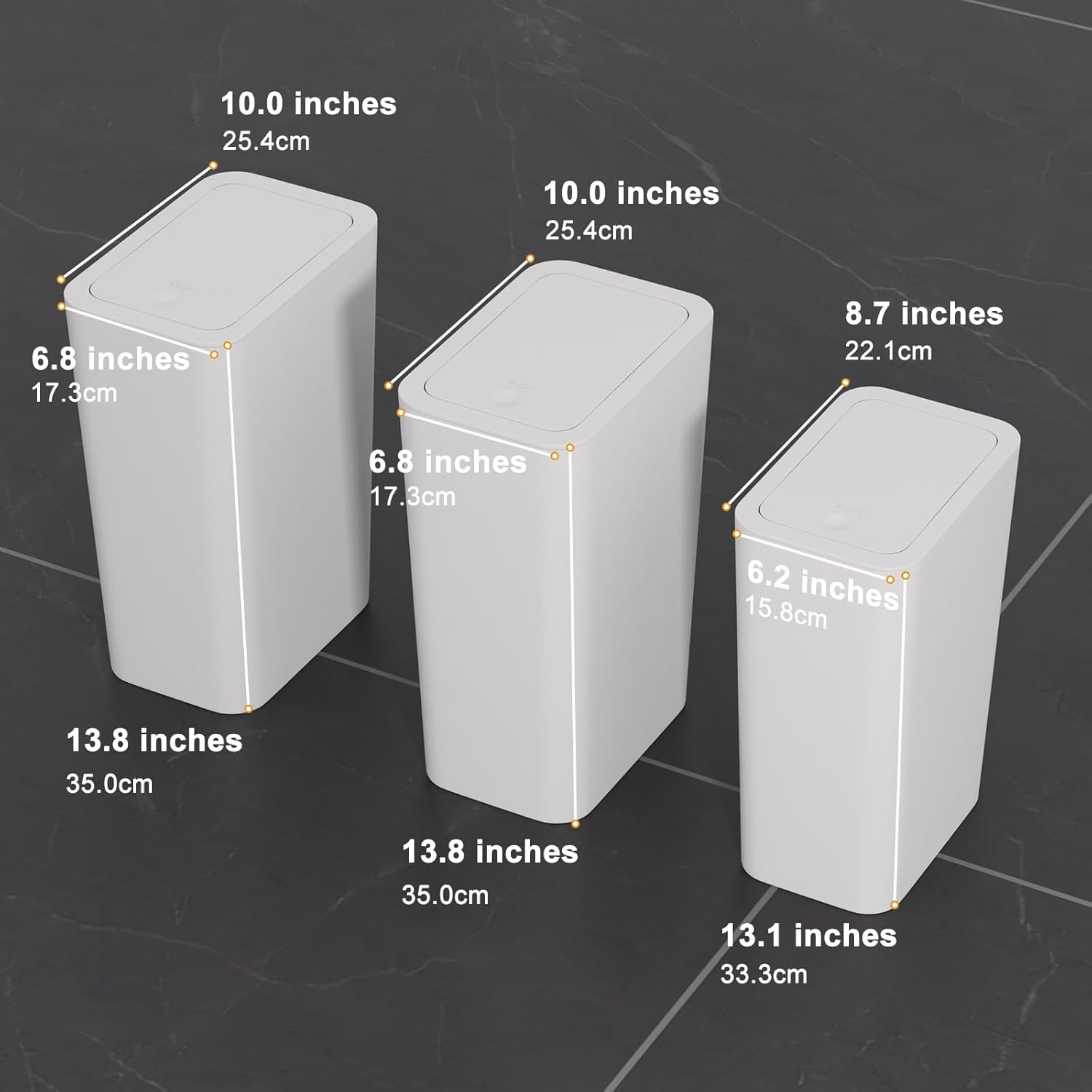 N. NETDOT Bathroom Trash Can with Lid 3 Pack Set,2 Packs 4Gal Slim Kitchen Trash Can and 1 Pack 2.6Gal Garbage Can,Small Trash Bin/Waste Basket for Bedroom,Office(Off White)